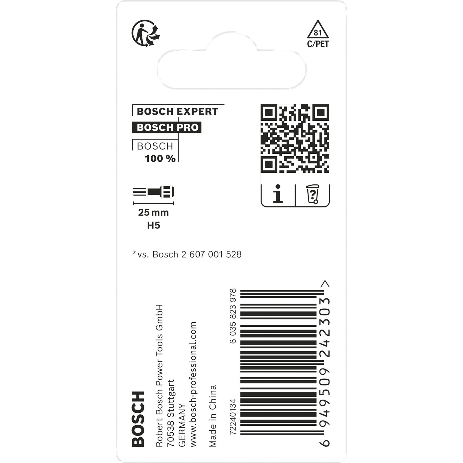 - 1x Bosch PRO Hex Impact Bit H5 25 mm 2-tlg.