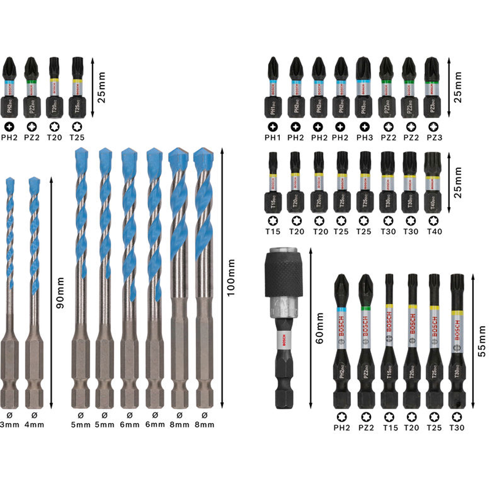 - 1x Bosch PRO Impact Schrauberbits und Multi Construction Bohrer Mixed Set 35-tlg.