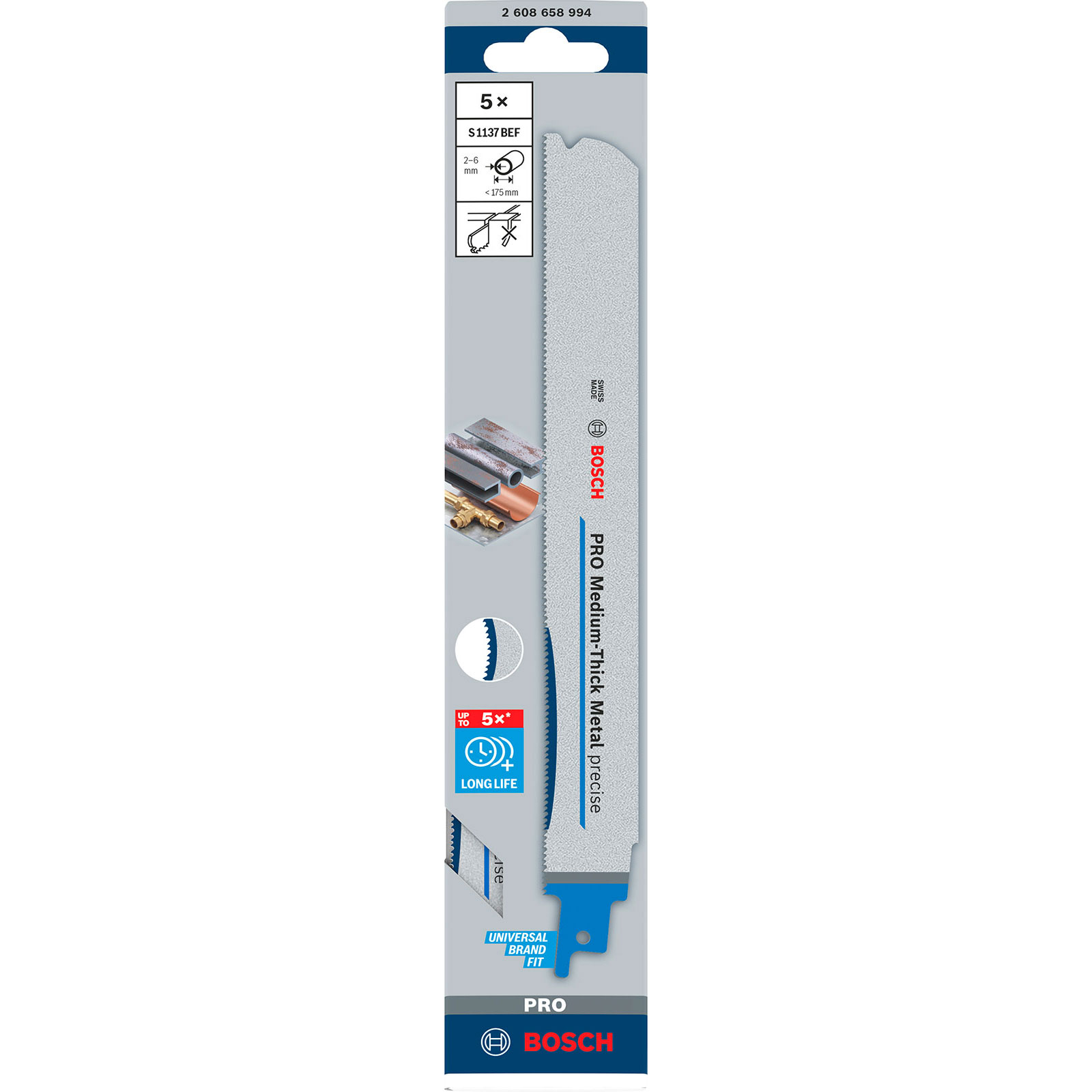 "Bosch PRO Medium-Thick Metal precise S1137BEF Blatt 1,1 x 25 x 225 mm 5-tlg. - 2608658994"
