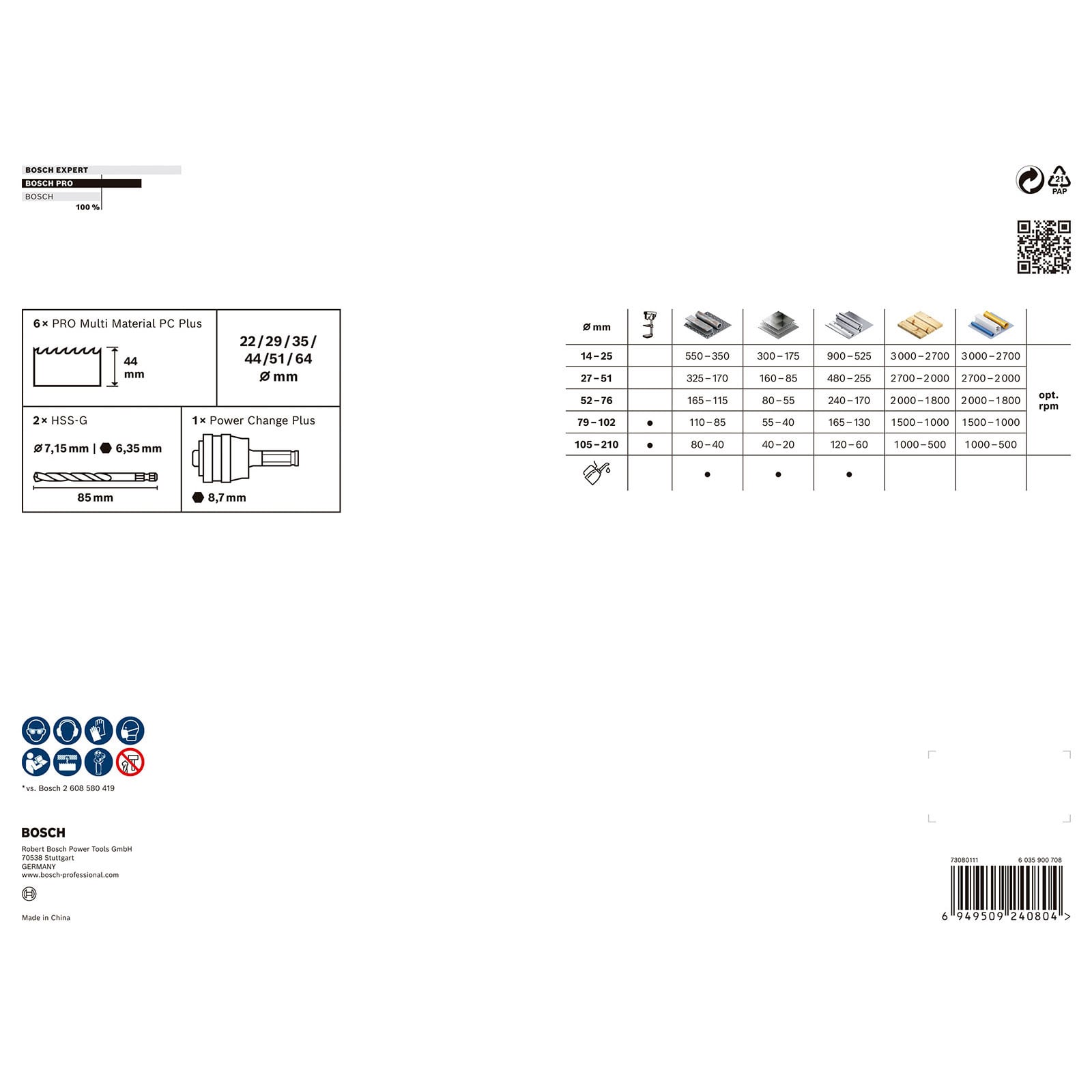 - 1x Bosch PRO Multi Material PC Plus Lochsägen-Set 9-tlg.