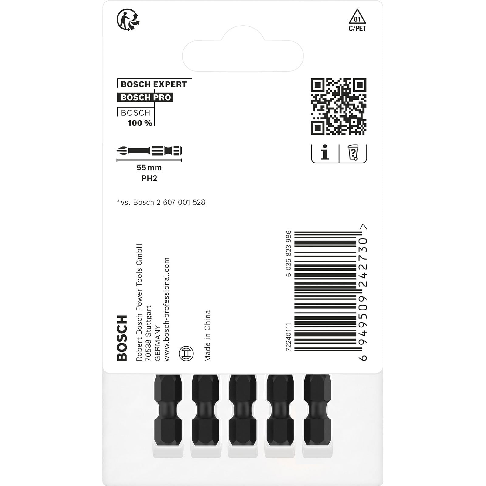 - 1x Bosch PRO Phillips Impact Bit PH2 55 mm 5-tlg.