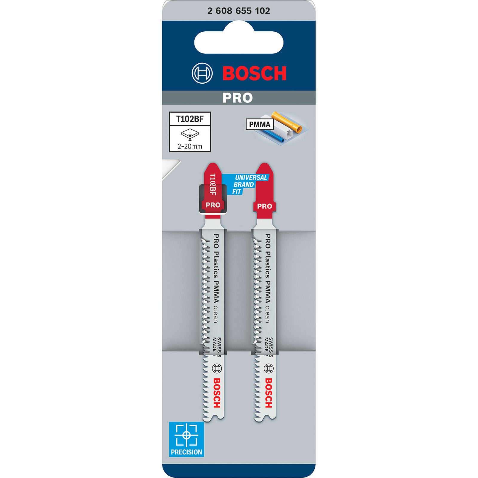 - Wir haben das PRO Plastics PMMA clean T102BF Stichsägeblatt entwickelt, damit du gerade, saubere Schnitte in PMMA-Acrylmaterialien (Polymethylmethacrylat) erzielen kannst.