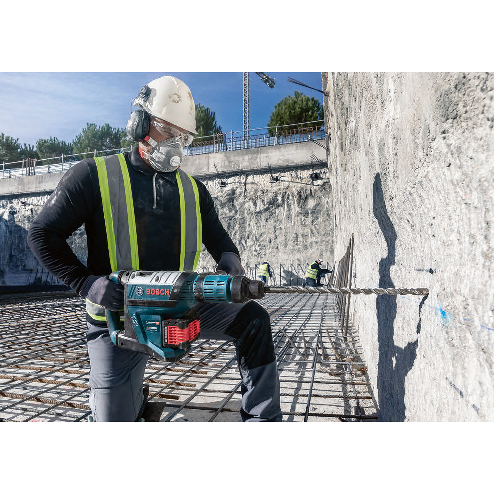 - Unser PRO SDS max-4 Hammerbohrer hilft Bauarbeitern, effektiv in dieses Material zu bohren.