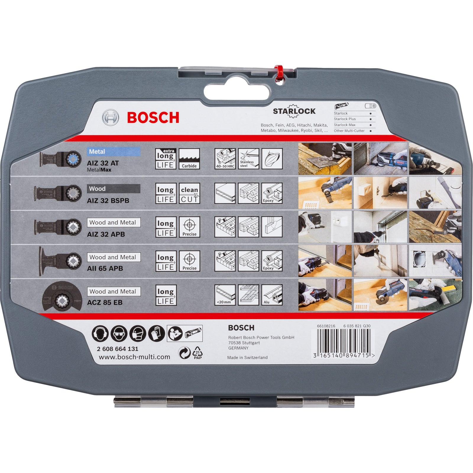 Das Starlock Best of Cutting Set, 5‐teilig, enthält eine Auswahl von Blättern für Spezialanwendungen mit Holz und Metall. Das Set enthält Blätter mit höherer Lebensdauer für alle Schneidarbeiten. Es eignet sich ideal zum Sägen von Weichholz, Hartholz, Spanplatten, Laminat, Parkett, weichem Kunststoff, Metallblechen bis 1 mm Stärke, Profilen aus nicht eisenhaltigem Metall, gehärtetem Metall sowie Kitt- und Dichtungsmaterial. Das Starlock-Aufnahmesystem ermöglicht einen schnellen Blattwechsel ohne Blattberührung in drei Sekunden. Das Aufnahmesystem ermöglicht durch seine dreidimensionale enge Passung maximale Kraftübertragung zwischen Maschine und Zubehör. Alle Klingen sind für Starlock-, Starlock Plus-, Starlock Max- und OIS-Multifunktionswerkzeuge geeignet.