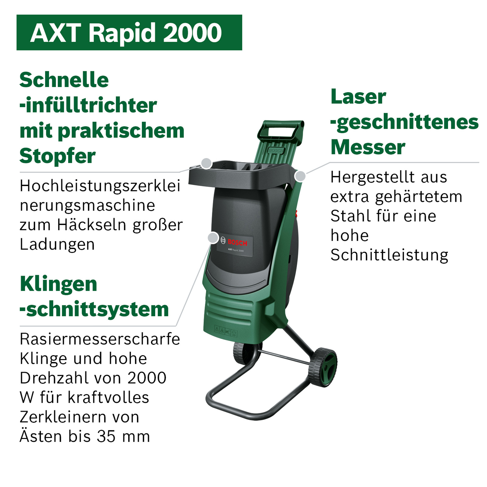 - 1x Bosch Rapid-Häcksler AXT Rapid 2000