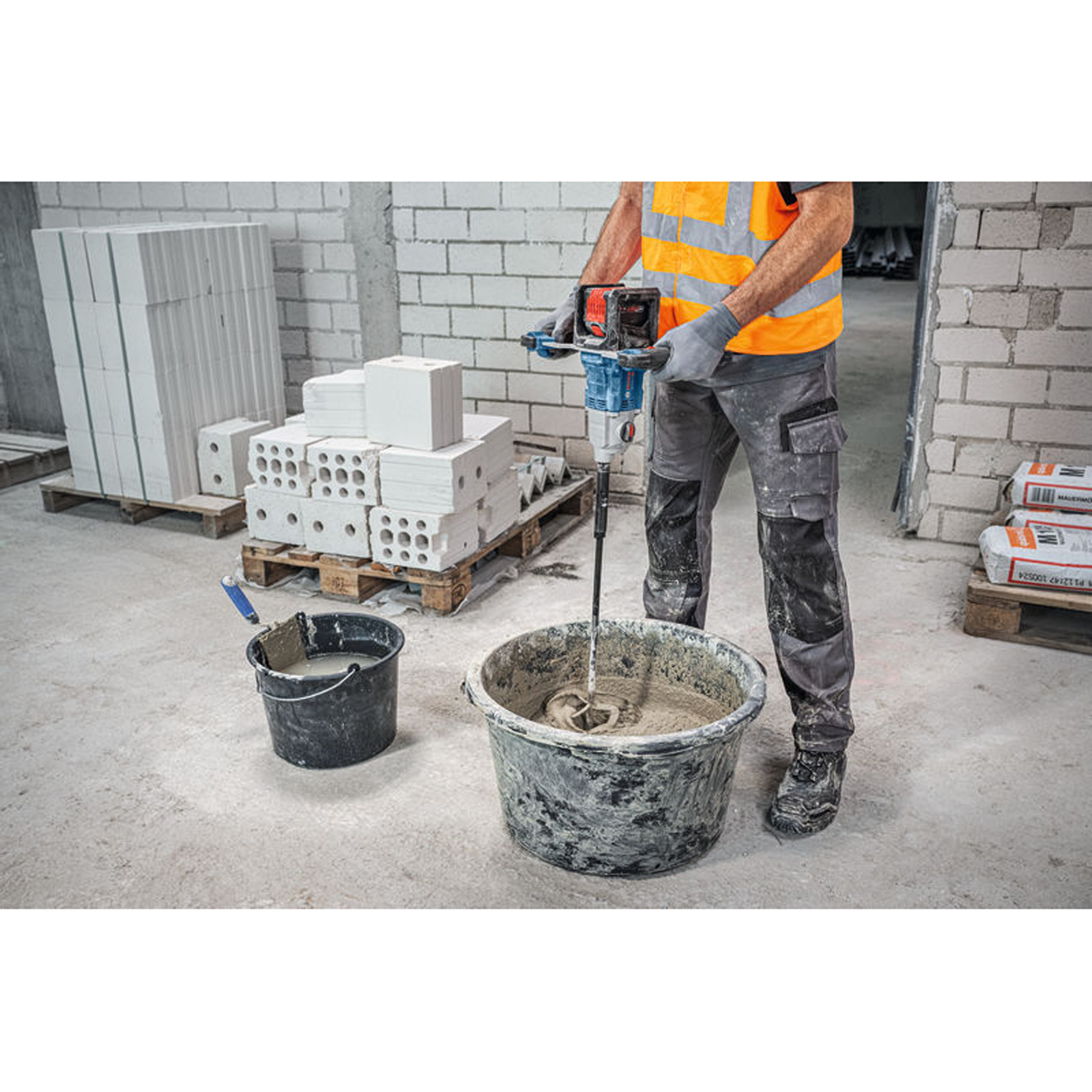 - Das leistungsfähige Akku-Rührwerk GRW 18V-160 ist ideal für Mauer- und Sanierungsarbeiten wie das Mischen von Beton für Betonformen, Schrägwandkonstruktionen und Landschaftsgärtnerei