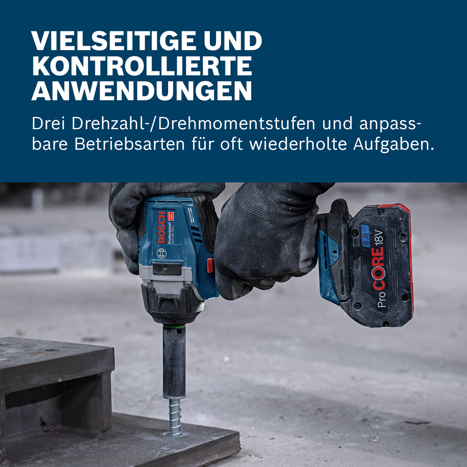 - Das Werkzeug ist mit allen Bosch und AMPShare 18V-Akkus kompatibel