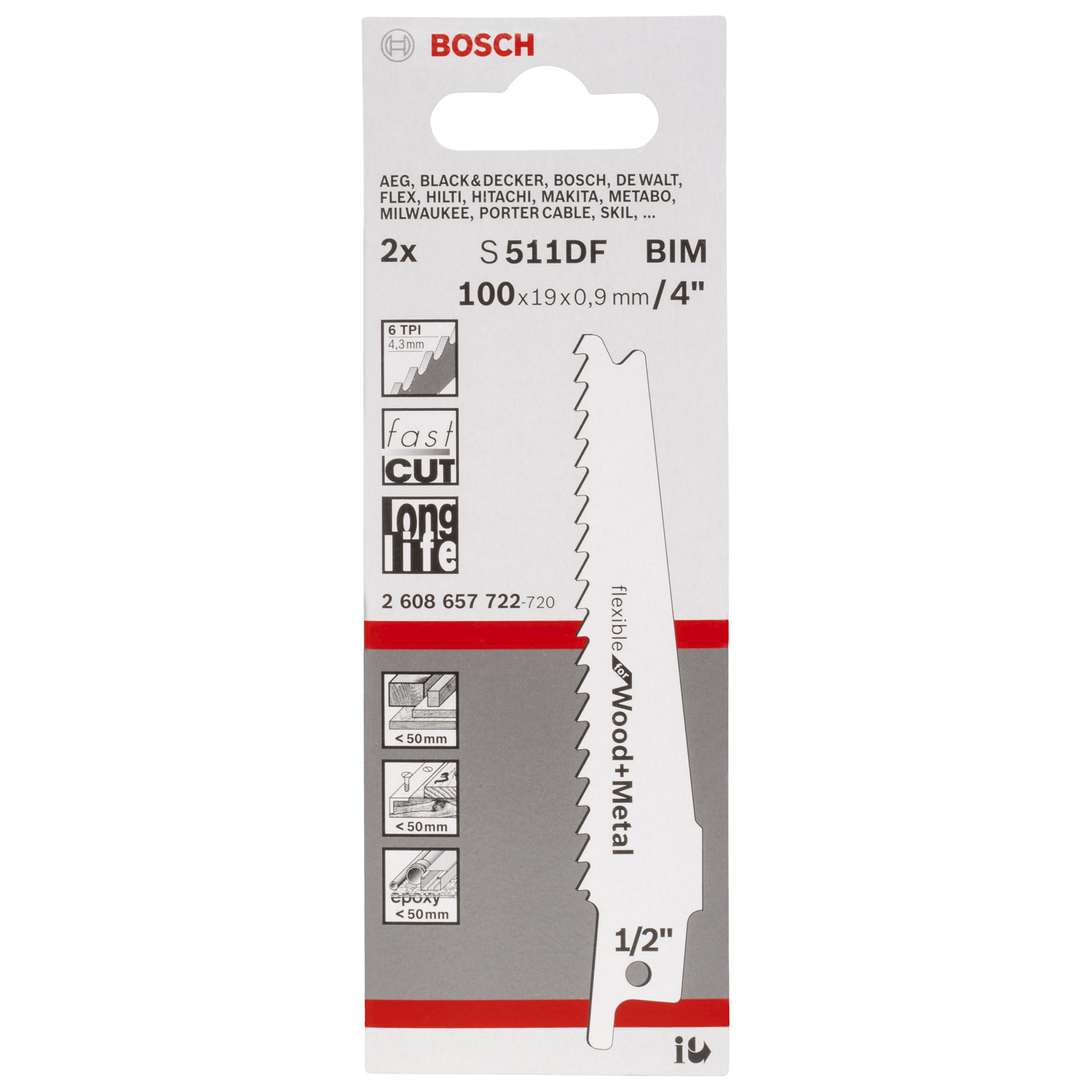 "Bosch 2x Säbelsägeblatt S 511 DF Flexible for Wood and Metal - 2608657722"