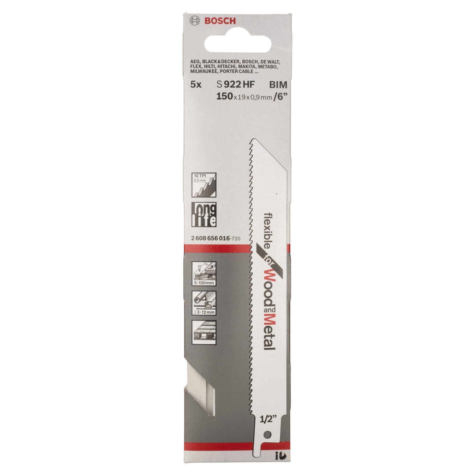 "Bosch 5x Säbelsägeblatt S 922 HF Flexible for Wood and Metal - 2608656016"
