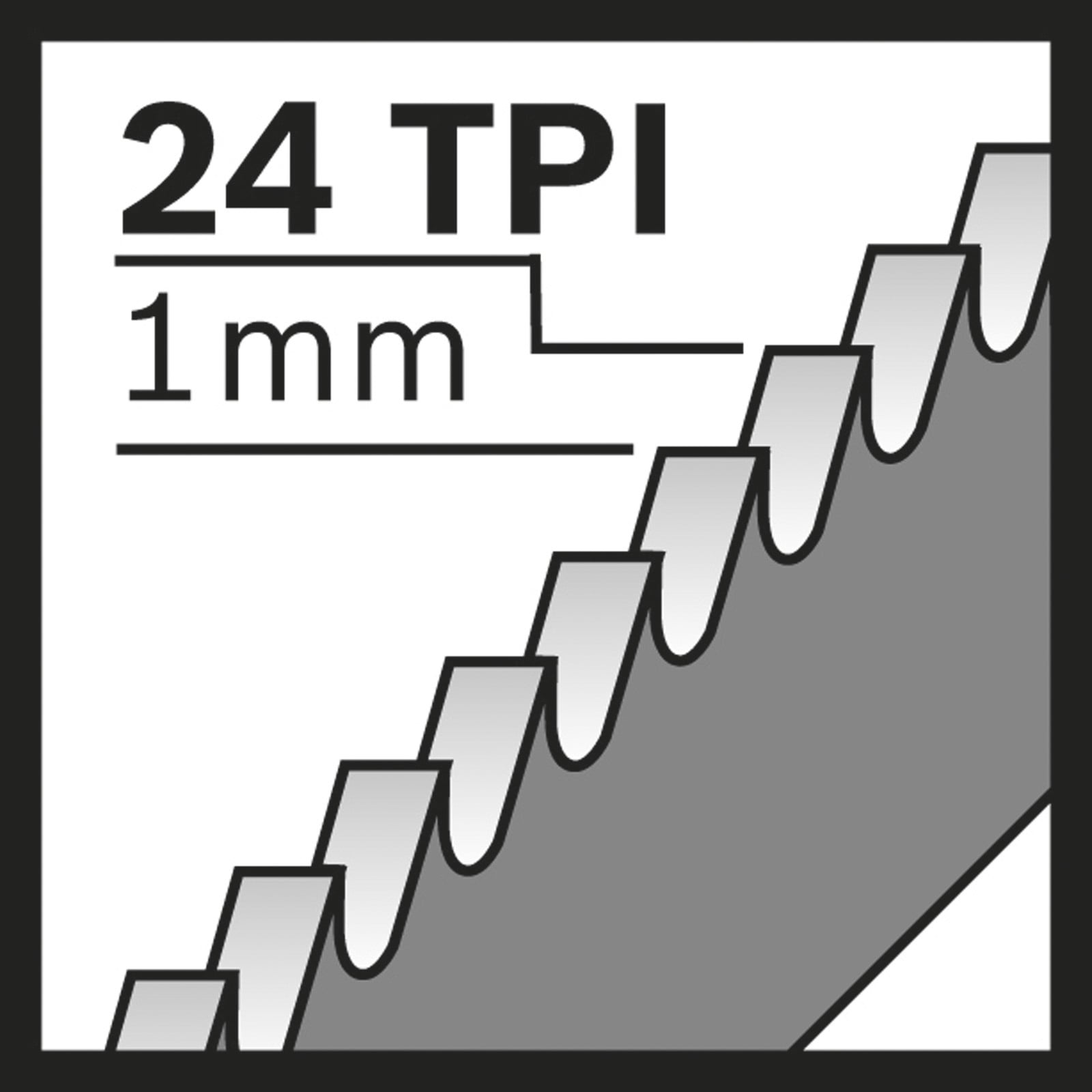- Dünner Stahl lässt sich dank der sehr feinen Zahnteilung (1 mm) und den gewellten Zähnen mühelos und glatt schneiden