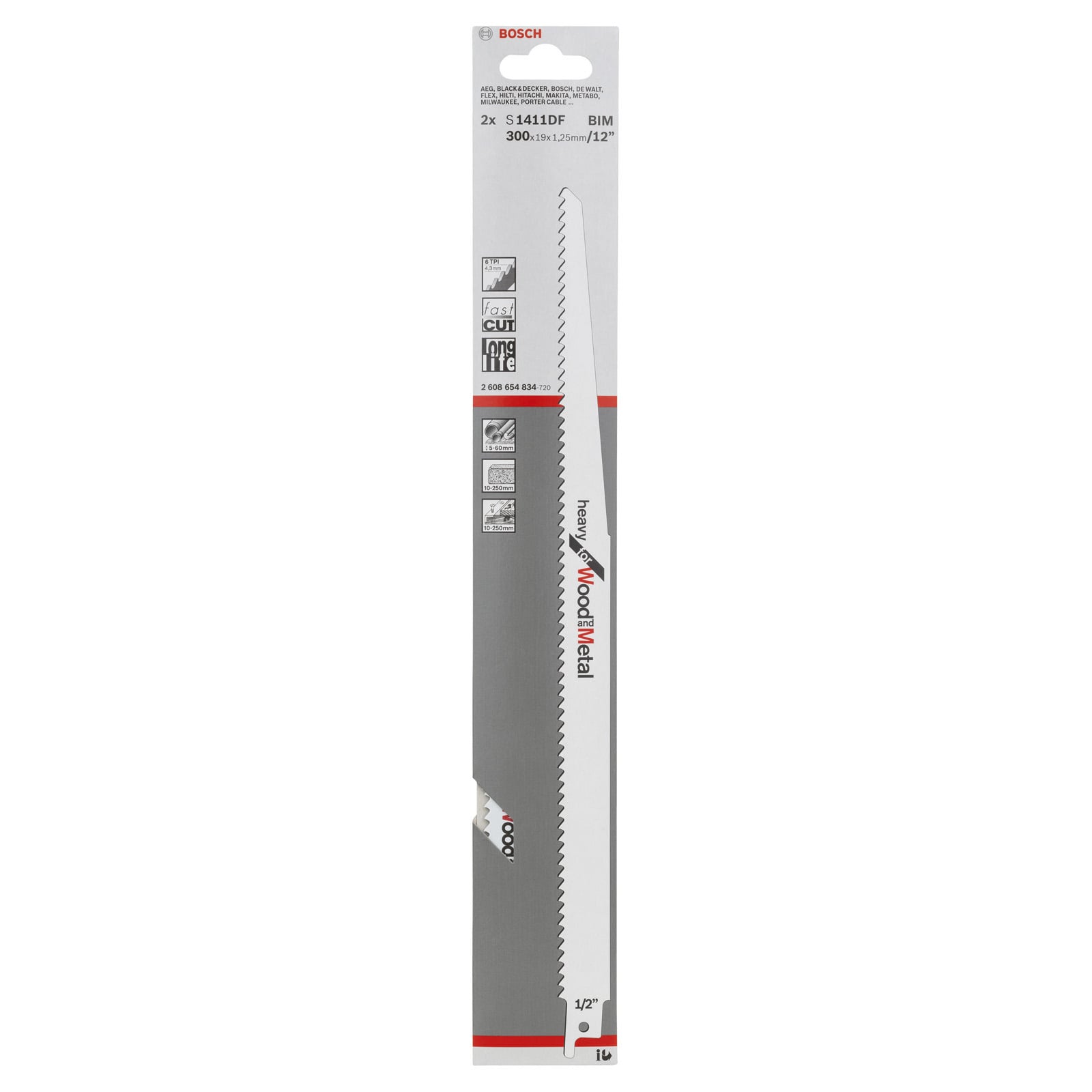 - Das S 1411 DF Heavy for Wood and Metal Säbelsägeblatt eignet sich für schnelle Kurvenschnitte in Holz und Metall.