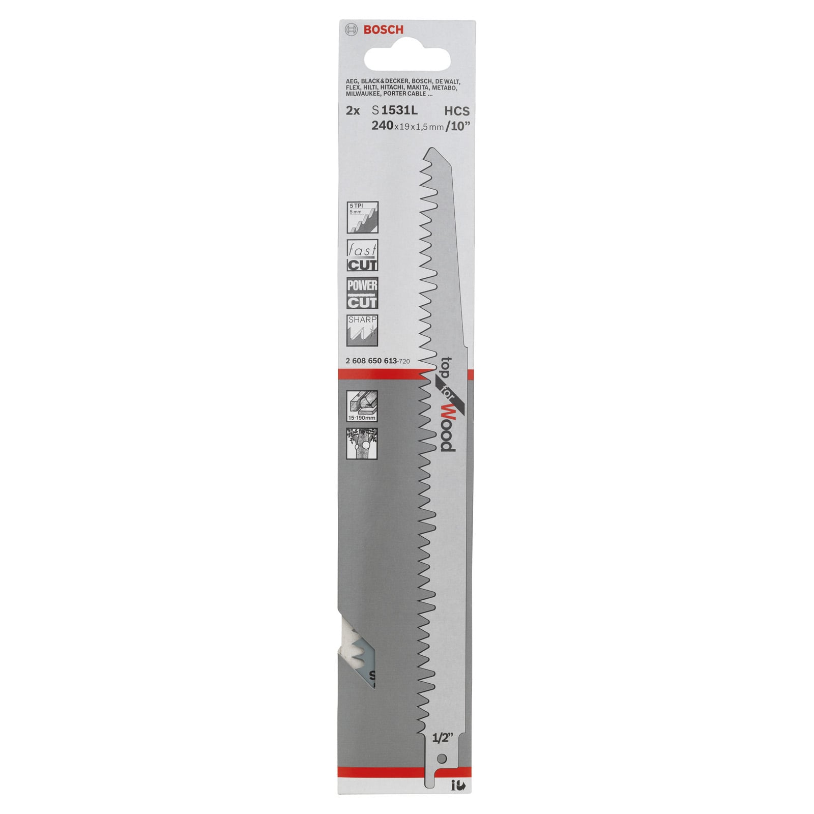 - S 1531 L Top for Wood Säbelsägeblatt ermöglicht saubere, schnelle Schnitte für das Beschneiden von Holz und das Ausasten lebenden Holzes.
