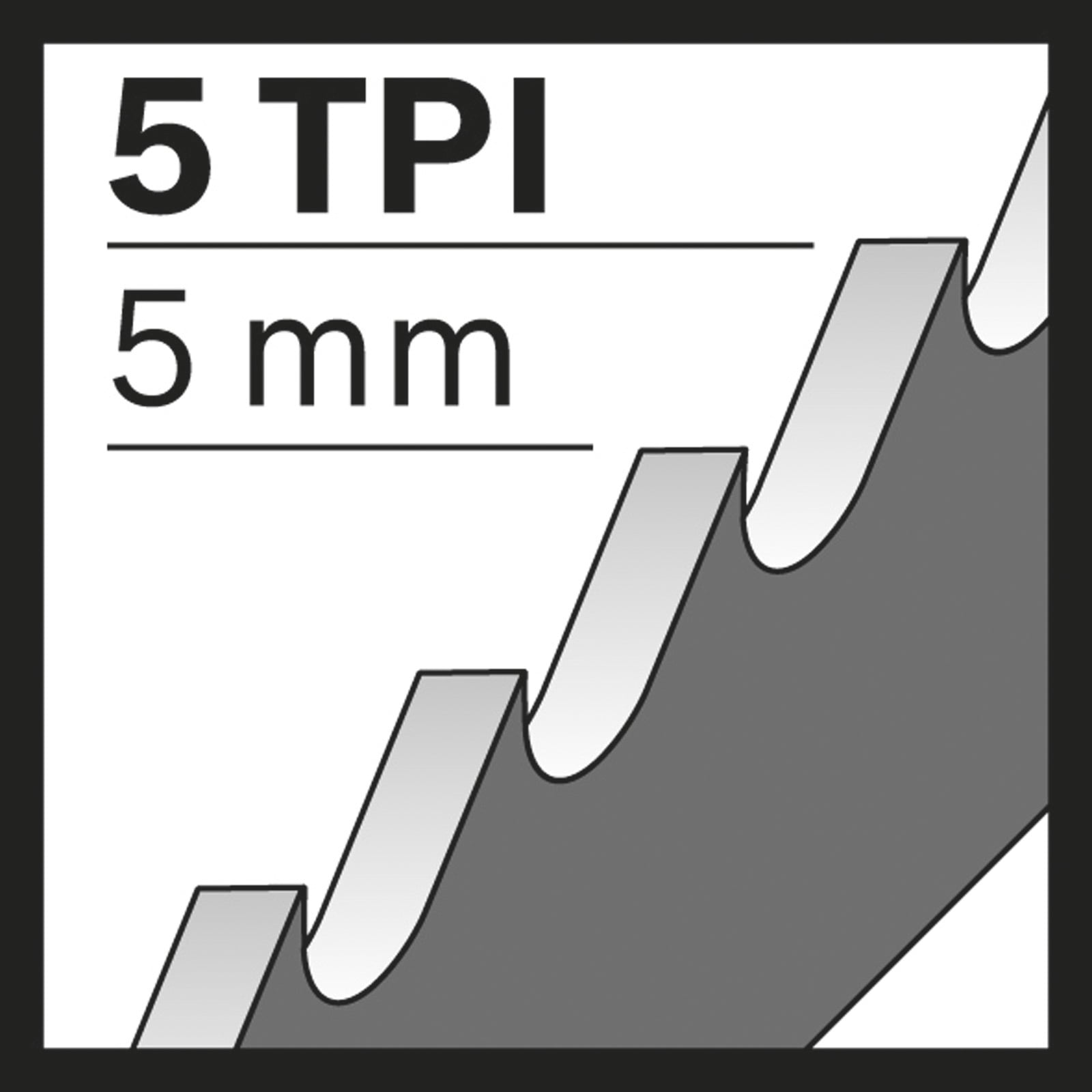 - Große Zahnteilung (5 mm) und große Spanräume entfernen Material schnell und effizient