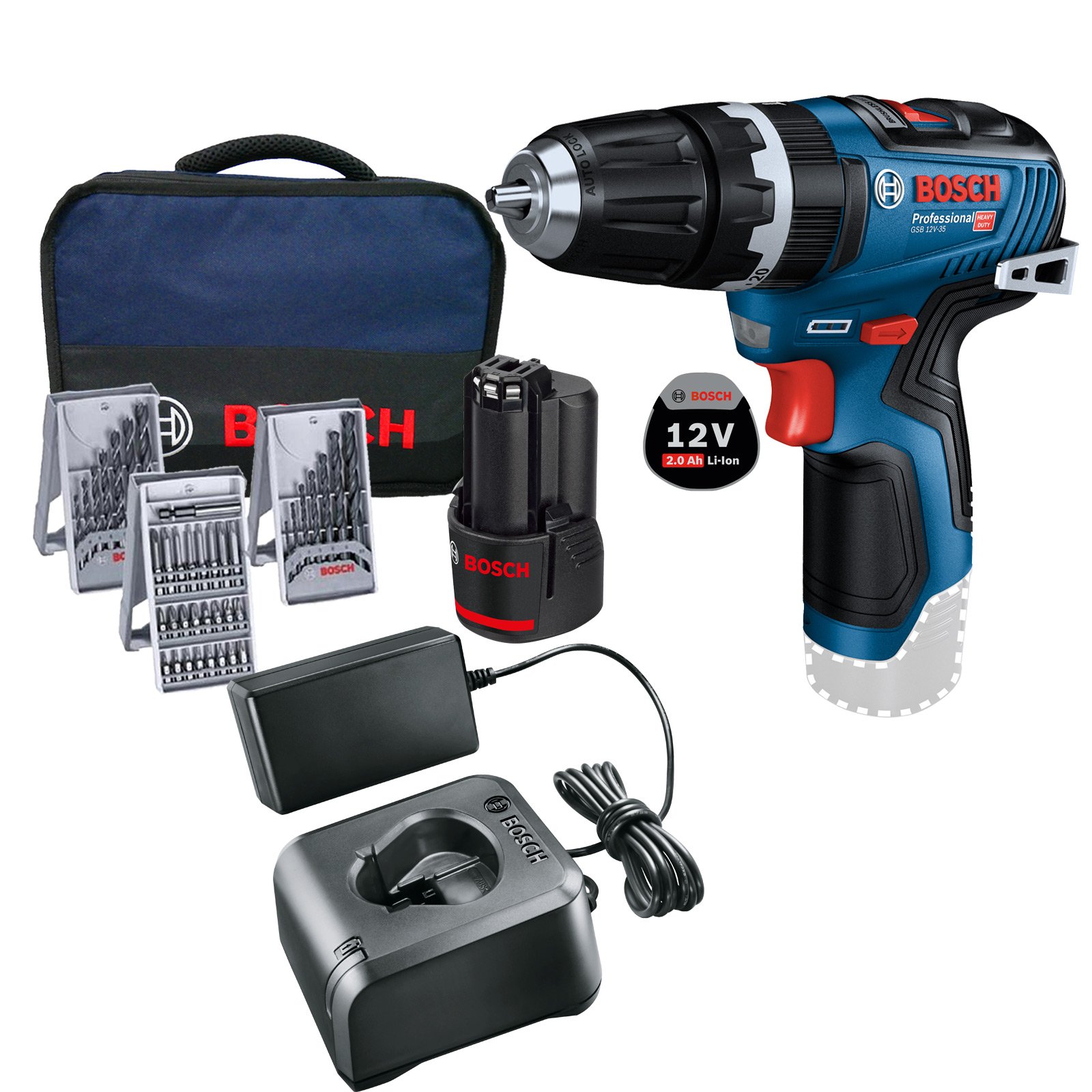Bosch Akku-Schlagbohrmaschine GSB 12V-35 / 1x 2,0 Ah Akku + Ladegerät inkl. Zubehör-Set im Softbag