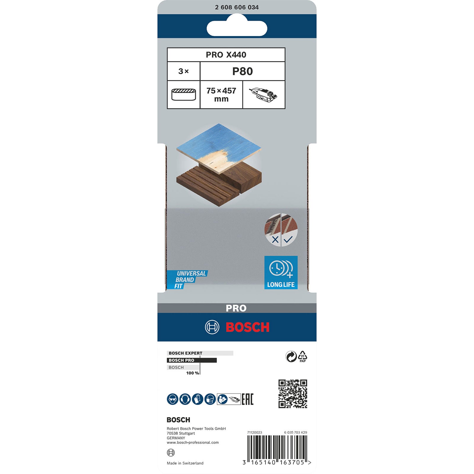 - 1x Bosch PRO X440 Schleifband 75 x 457 mm 80
