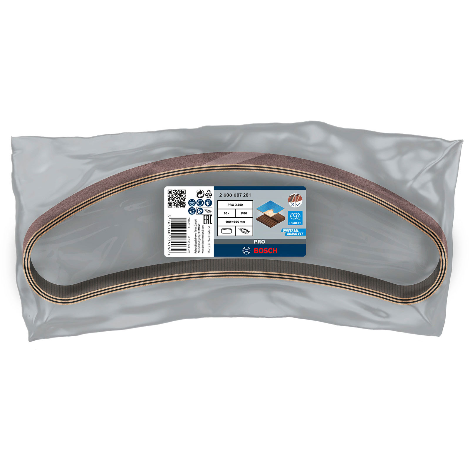 - 1x Bosch PRO X440 Schleifband 100 x 690 mm 80