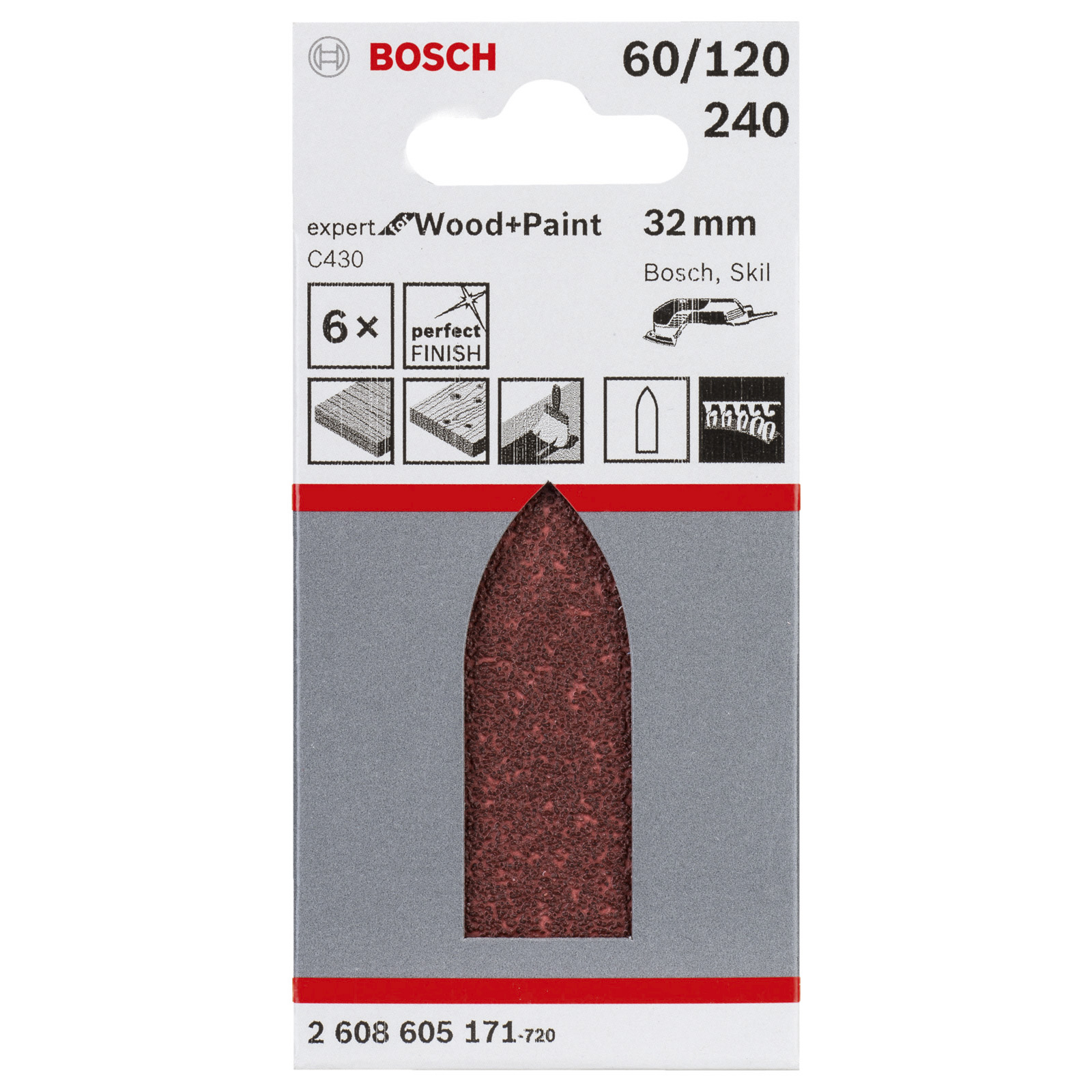 - 6x Bosch Schleifblatt Expert for Wood, ungelocht, 32 mm, 60, 120, 240 -2608605171