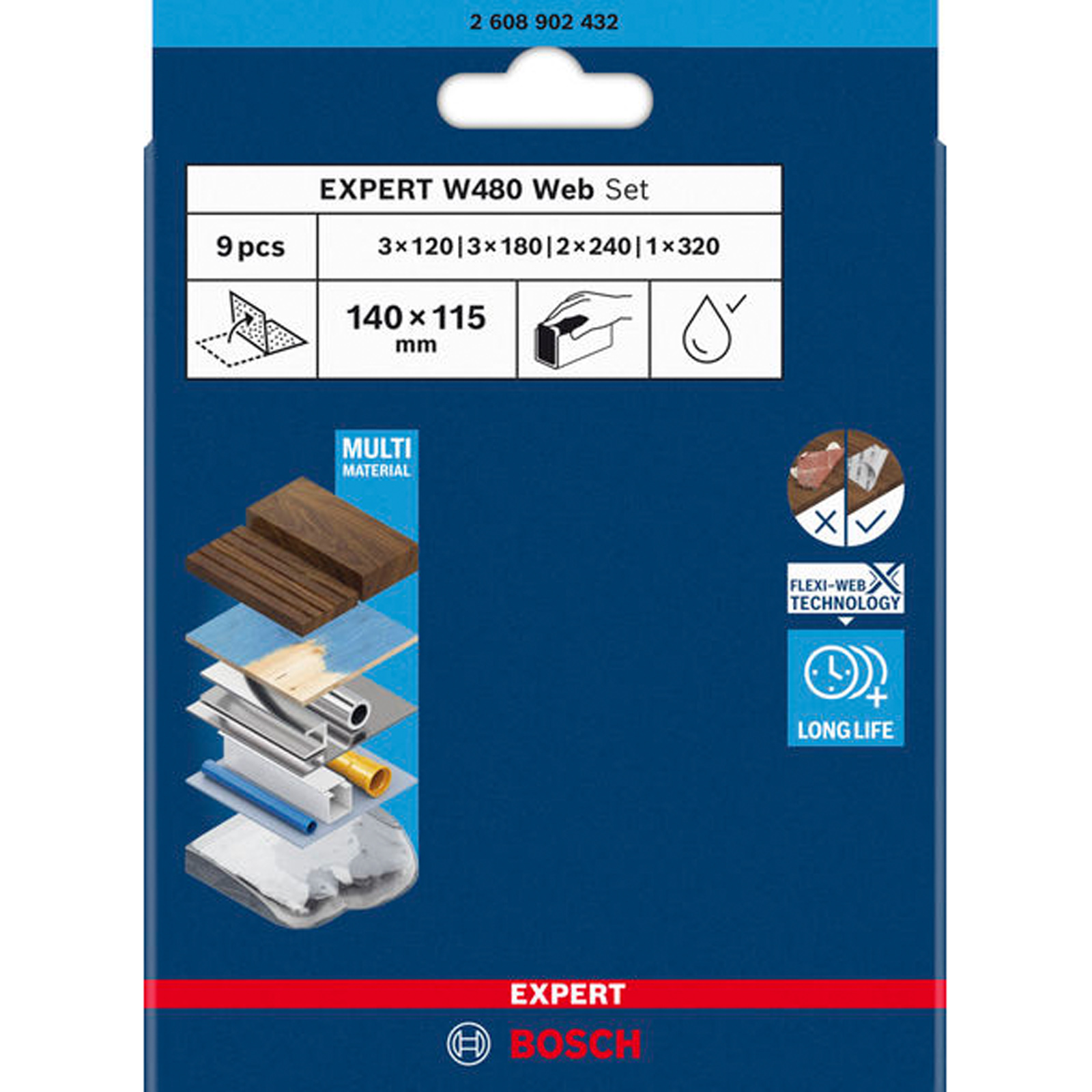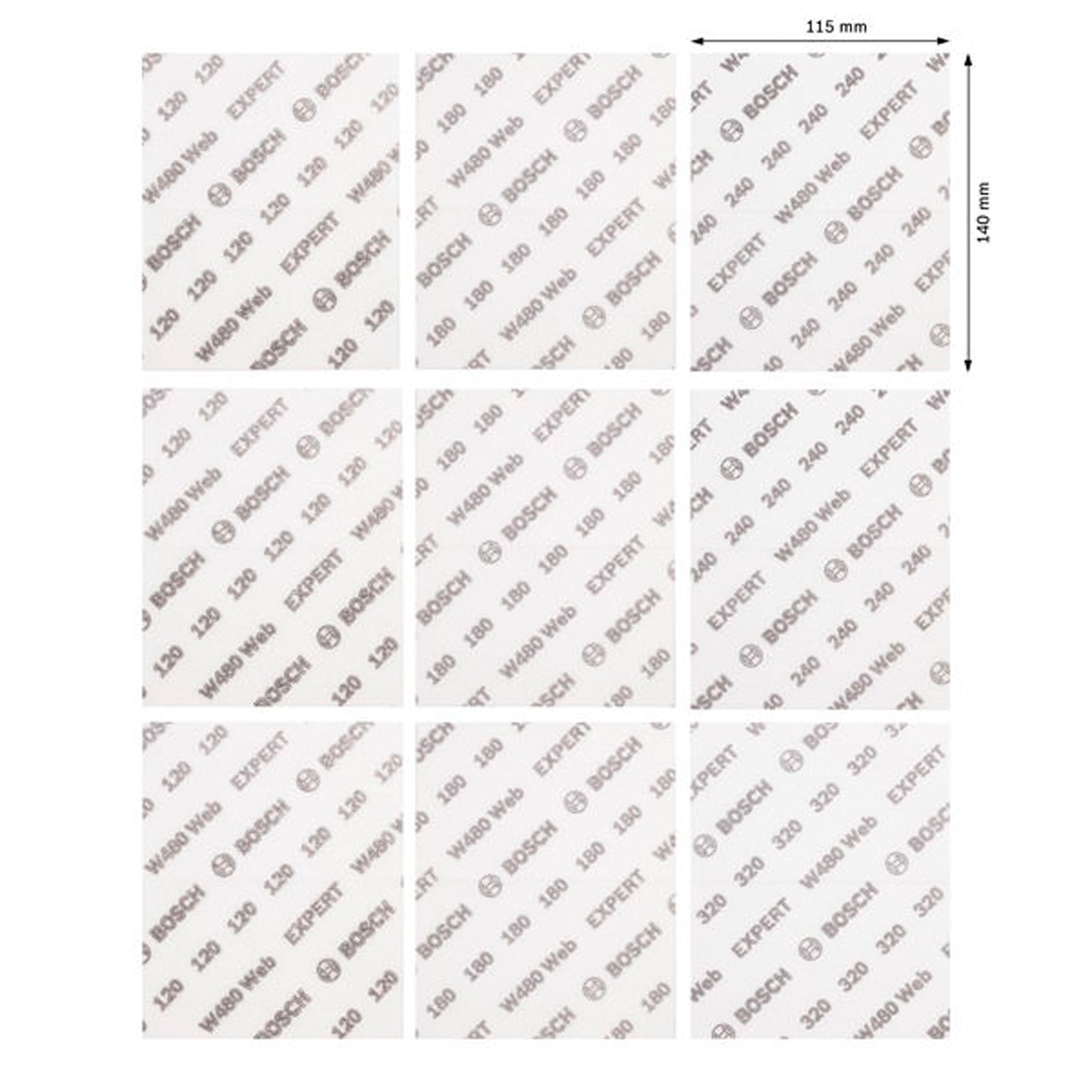 "Bosch Schleifblatt ExW480 Web 115 x 140 mm Set G120/G180/G240/G320 9tlg. - 2608902432"