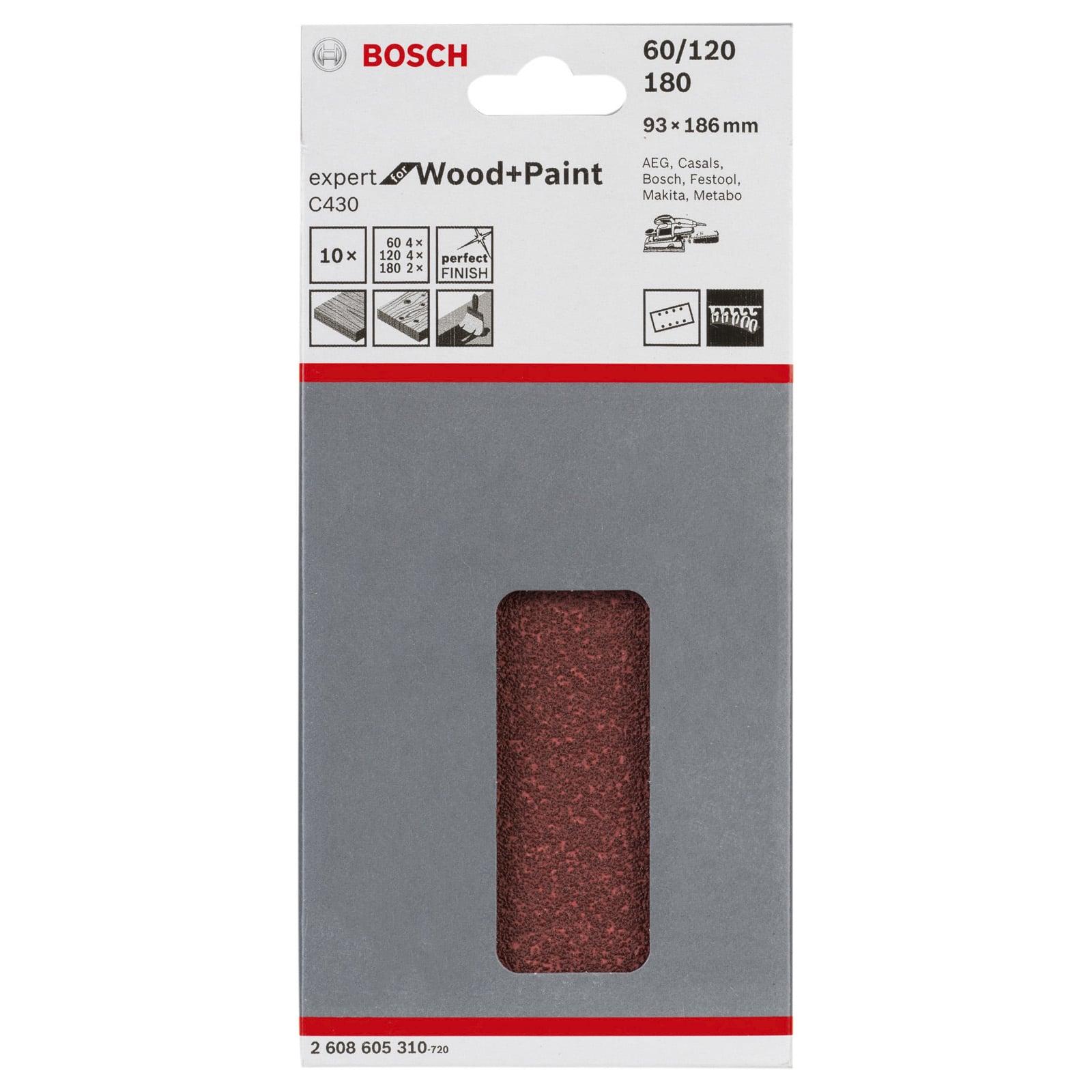 - 1x Bosch Schleifblatt-Set C430 Expert for Wood and Paint 10-tlg. 93x186mm bestehend aus: