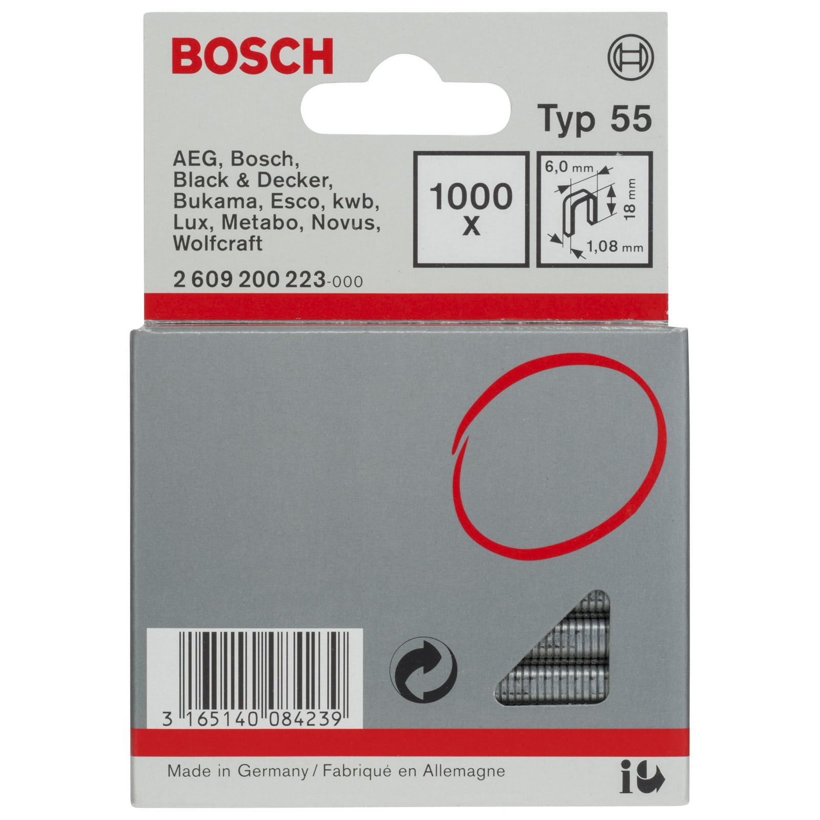 - 1.000x Bosch Schmalrückenklammer Typ 55, 6 x 1,08 x 18 mm