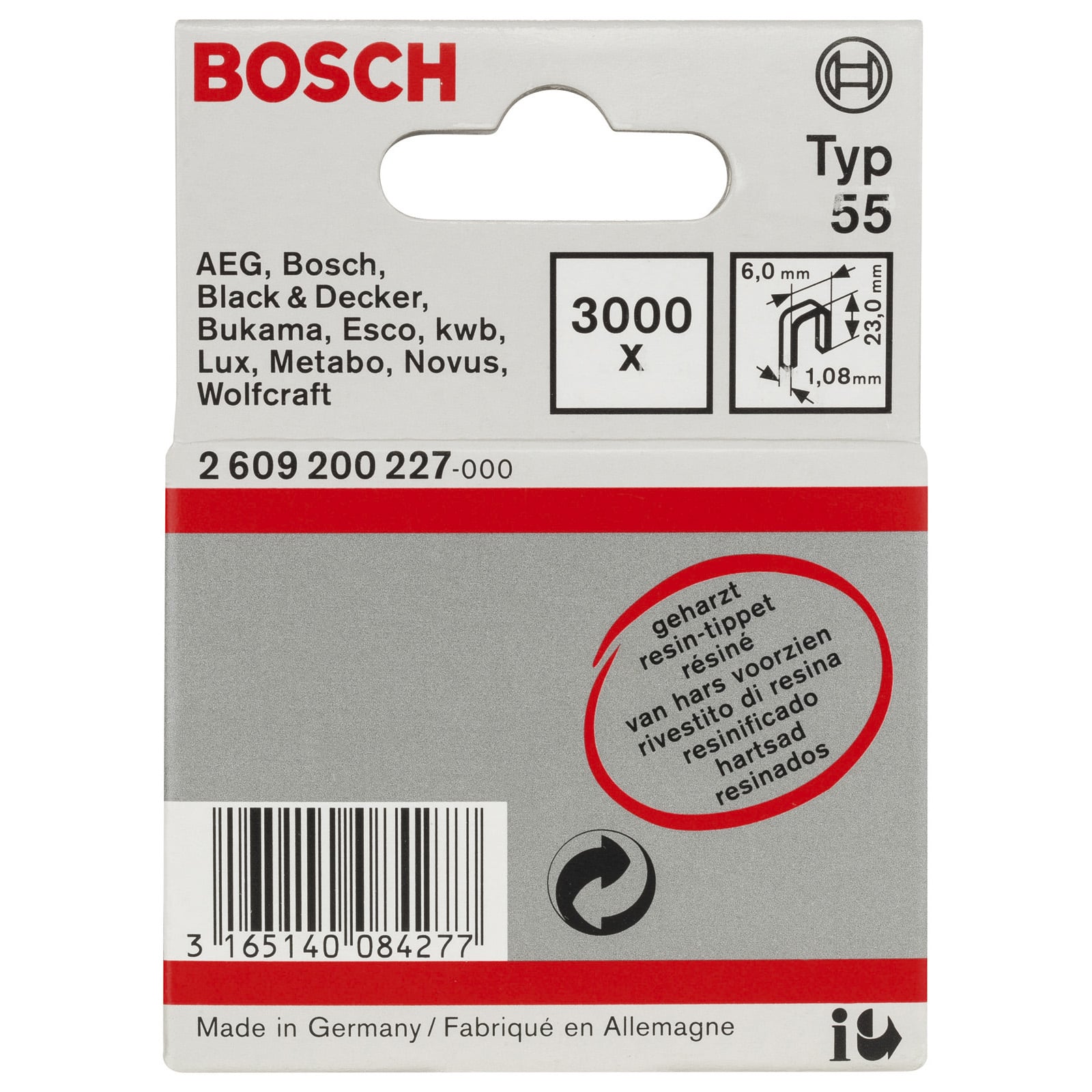 "Bosch 3.000x Schmalrückenklammer Typ 55, geharzt 6 x 1,08 x 23 mm - 2609200227"