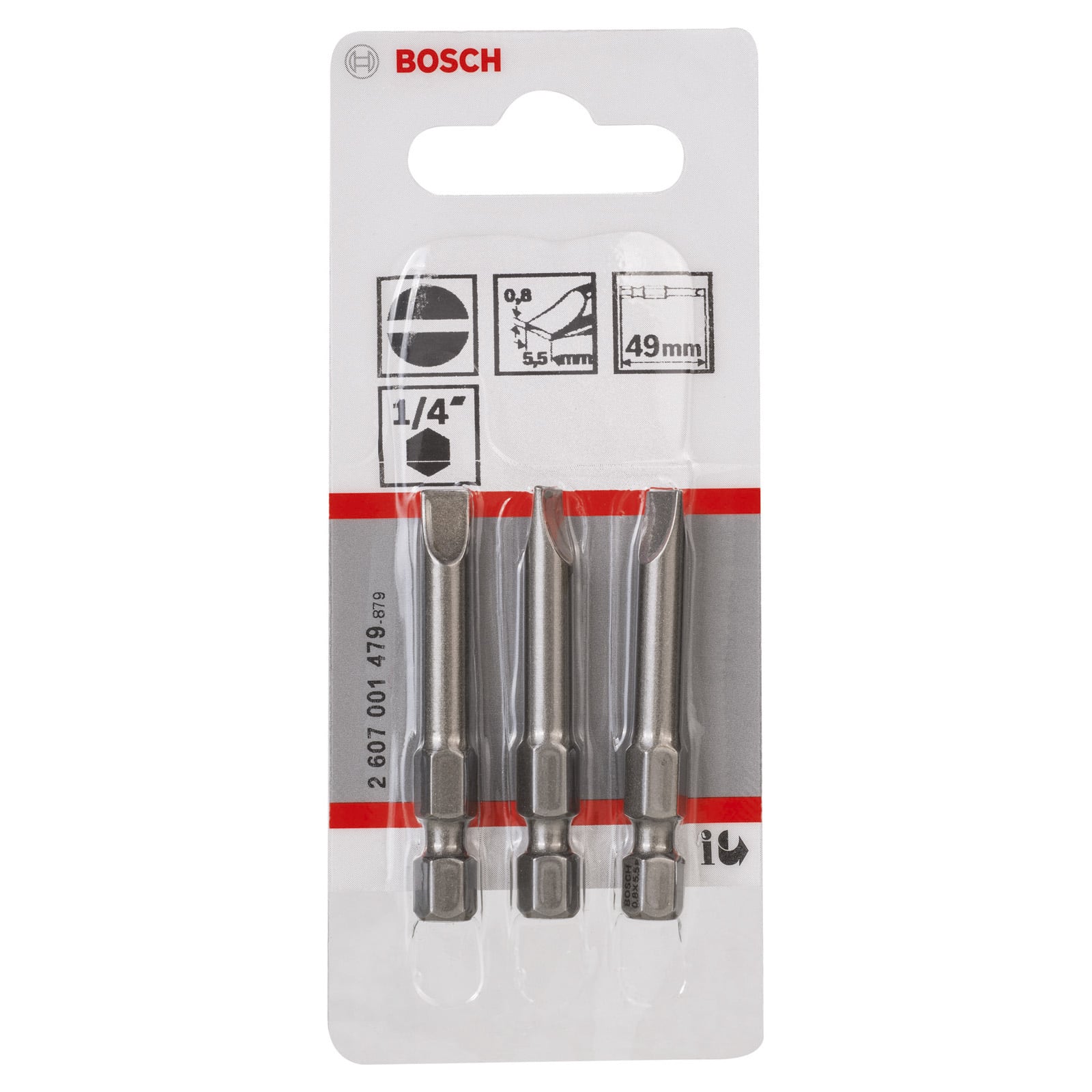 "Bosch 3x Schrauberbit Extra-Hart, S 0,8 x 5,5, 49 mm - 2607001479"