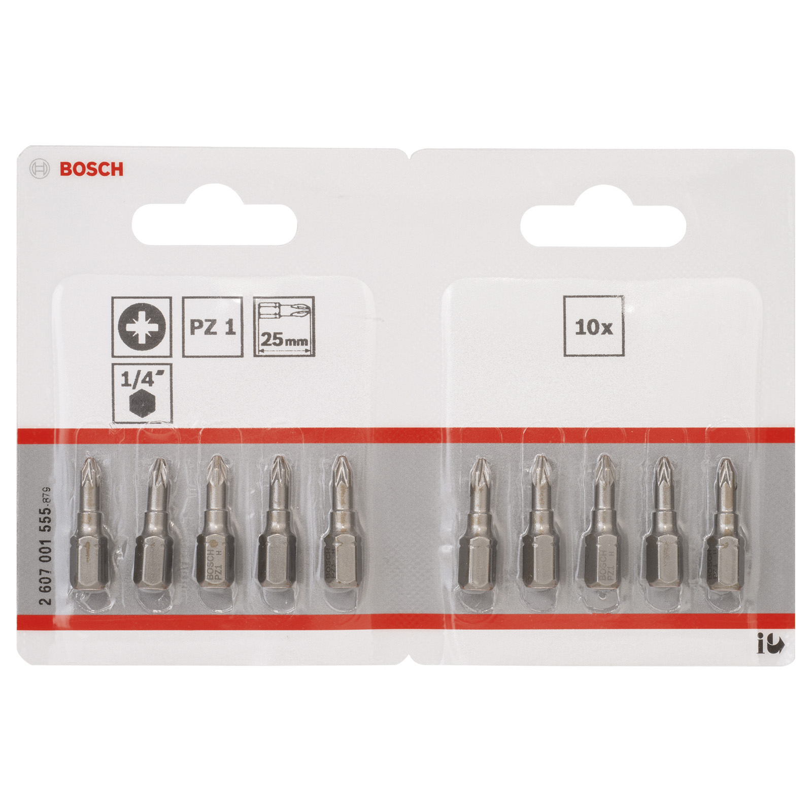 - 10x Bosch SchrauberbitExtra-Hart, PZ 1, 25 mm - 2607001555