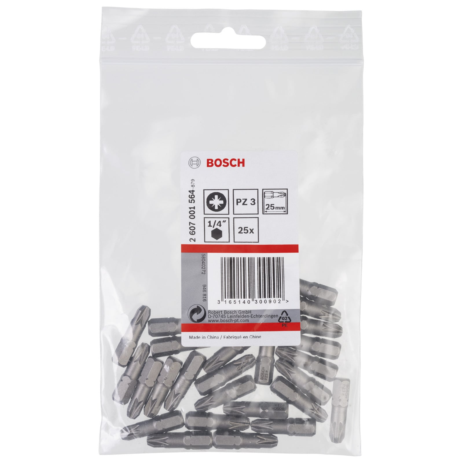 - 25x Bosch SchrauberbitExtra-Hart, PZ 3, 25 mm - 2607001564