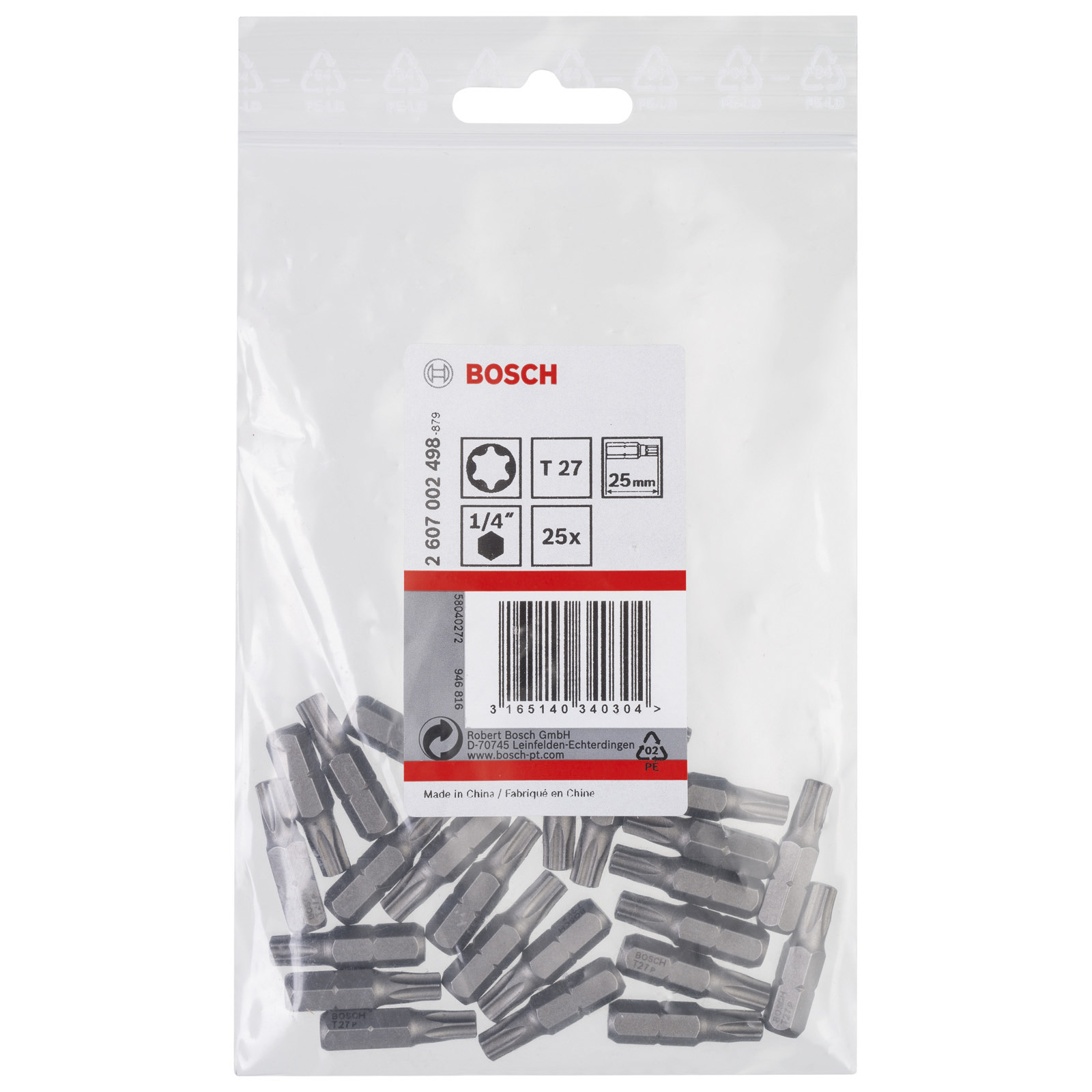 - 25x Bosch SchrauberbitExtra-Hart, T27, 25 mm - 2607002498