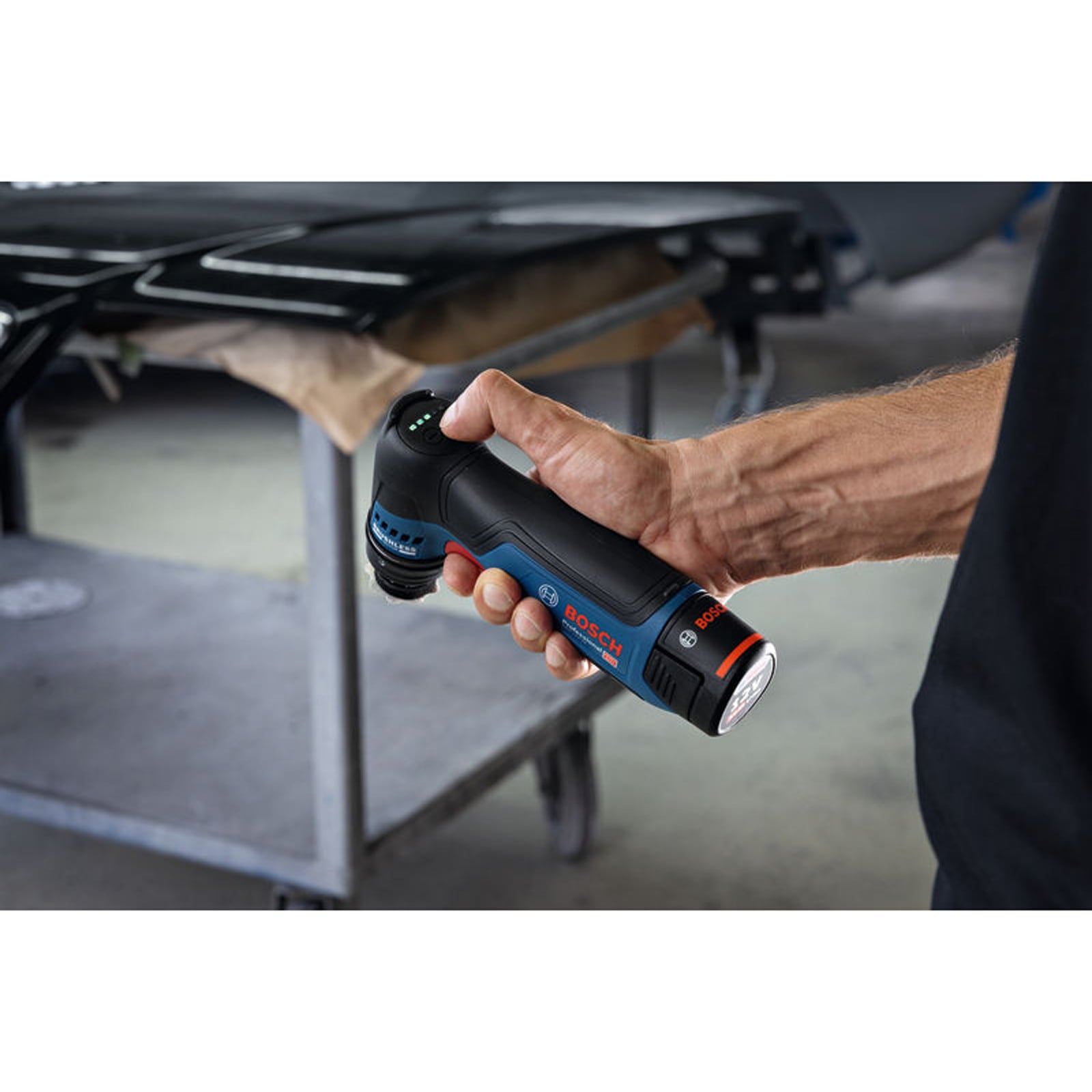- Der GSS 12V-32 eignet sich zum Punktschleifen, Reparieren von lackierten Oberflächen und dem Finish im Kfz-Bereich.
