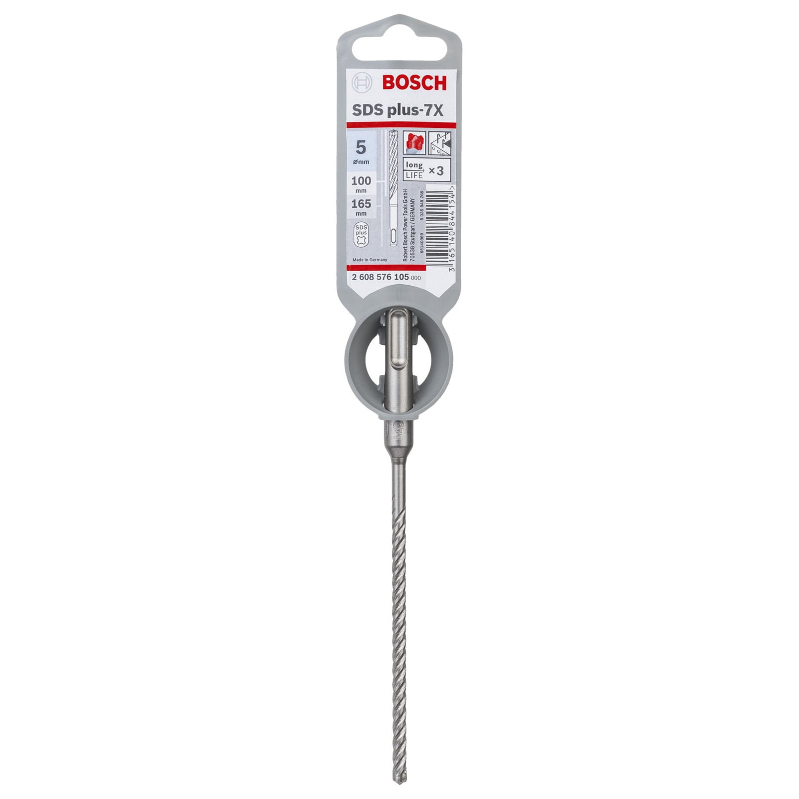 "Bosch Hammerbohrer SDS-plus-7X 5 x 100 x 165 mm - 2608576105"