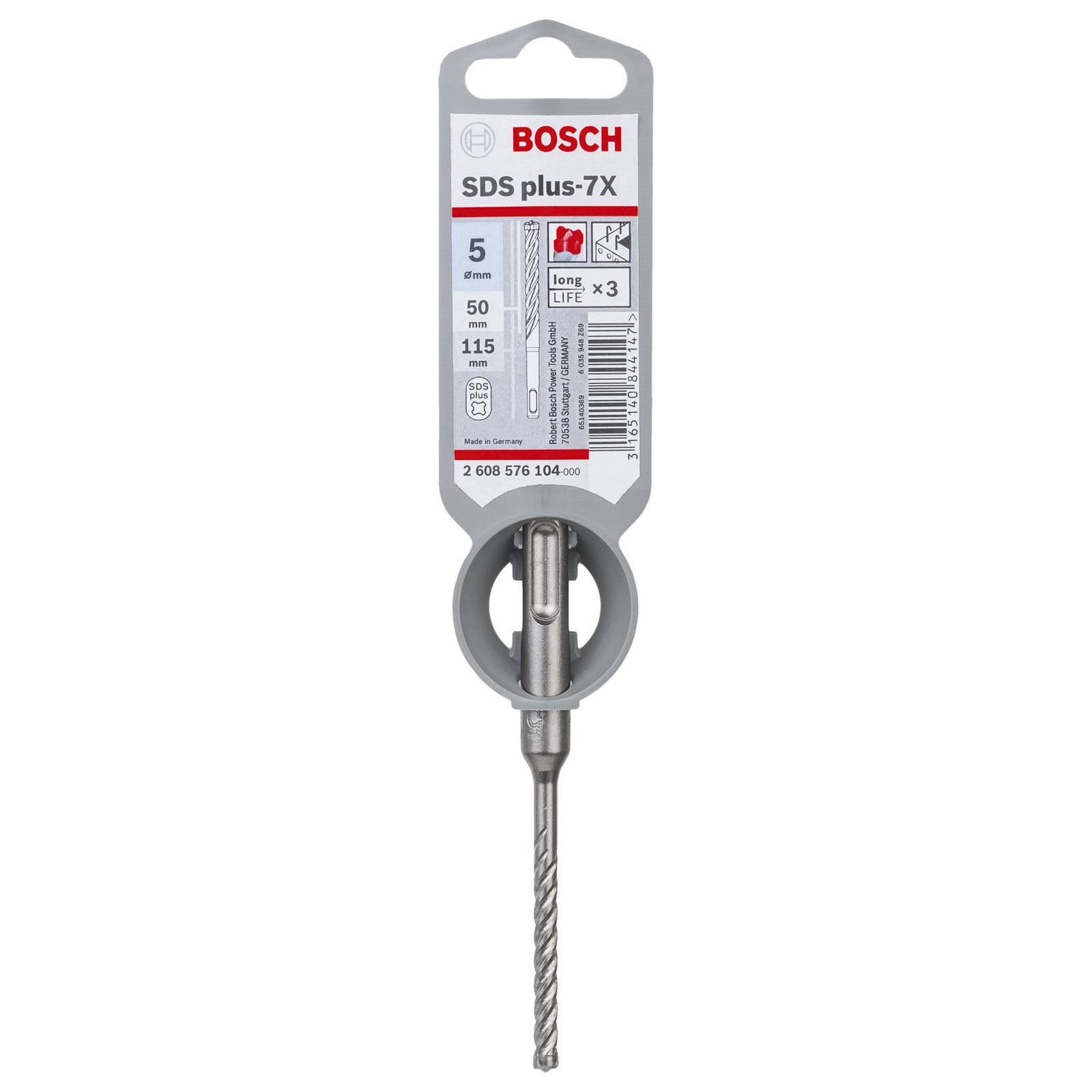 "Bosch Hammerbohrer SDS-plus-7X 5 x 50 x 115 mm - 2608576104"