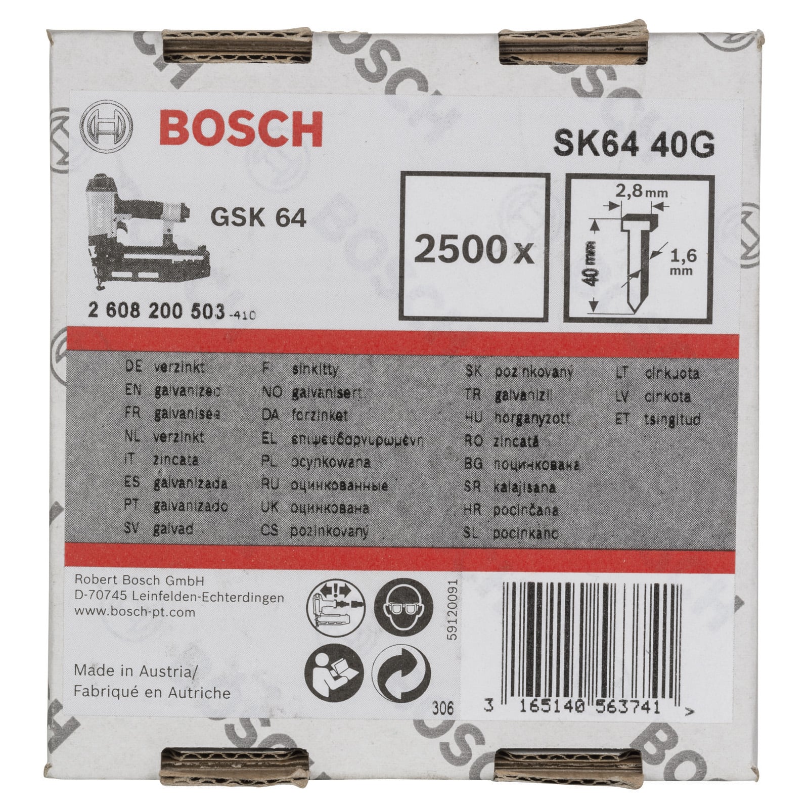 "Bosch Senkkopf-Stift SK64 40G, 1,6 mm, 40 mm, verzinkt - 2608200503"