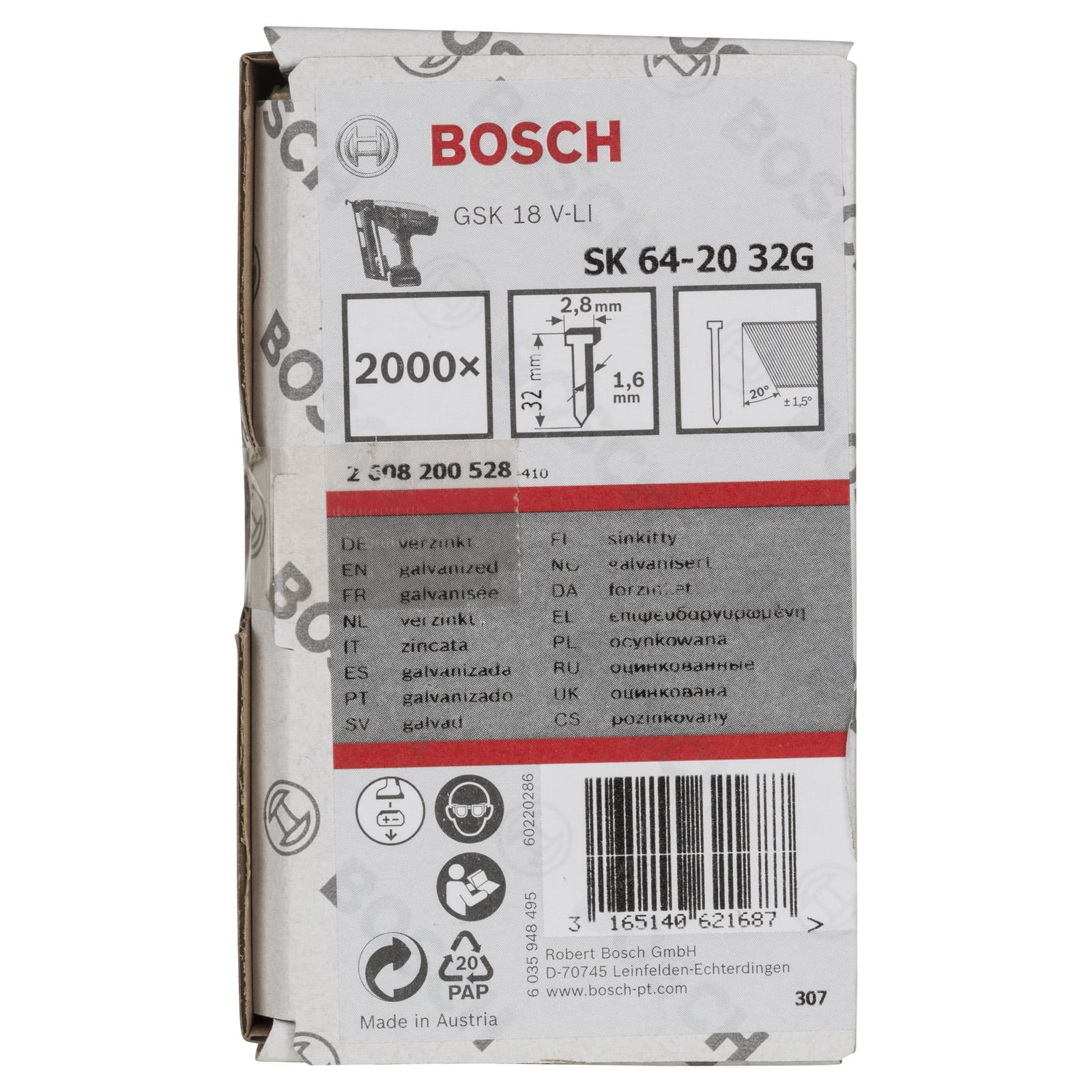 "Bosch Senkkopf-Stift SK64 20G, 32 mm verzinkt - 2608200528"