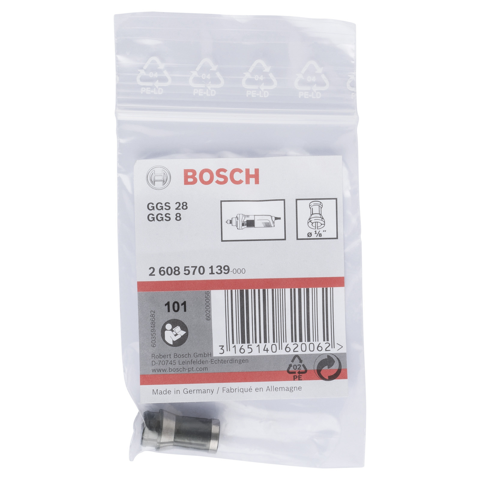 - 1x Bosch Spannzange ohne Spannmutter, 1/8, für Bosch-Geradschleifer - 2608570139