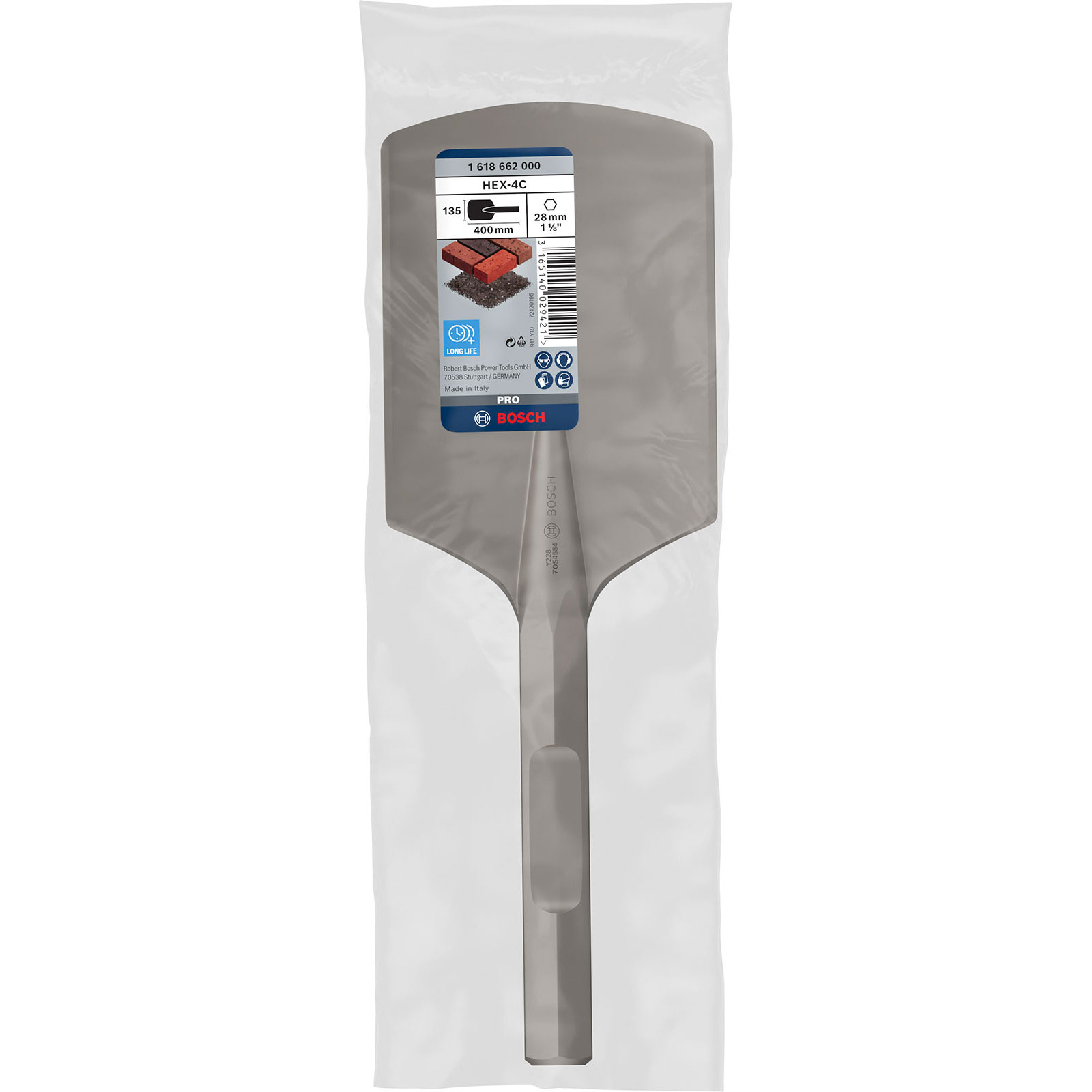 "Bosch PRO Hex-4C Spatmeißel gerundet 28 mm 135 x 400 mm - 1618662000"