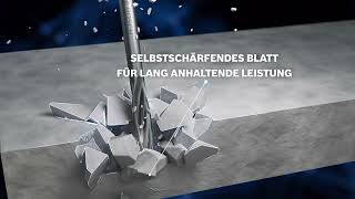- In sich gedrehte selbstnachschärfende Spitze, breiterer Materialabtrag und dadurch glattes Arbeiten