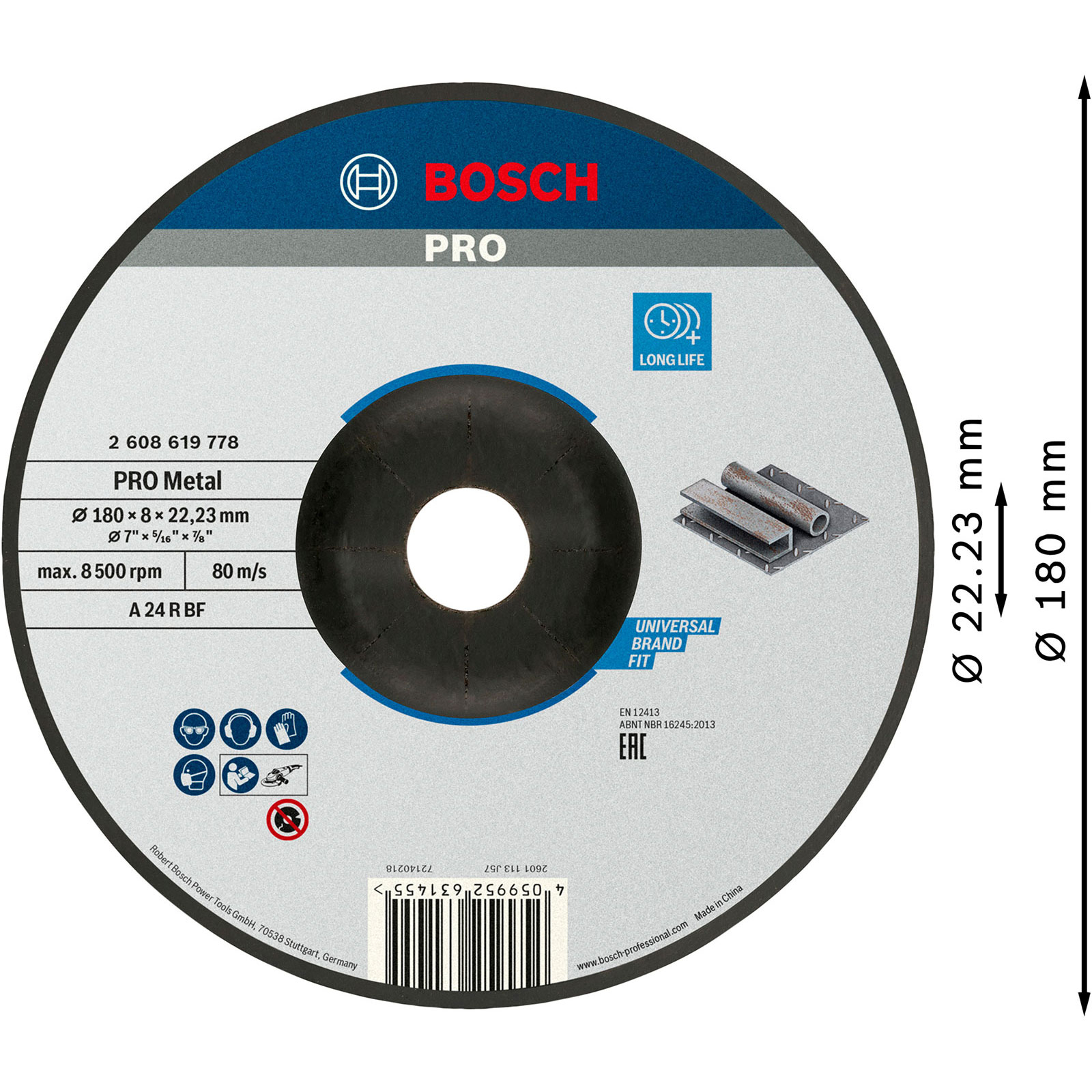 "Bosch PRO Metal Schleifscheibe 180 x 8 x 22,23 mm - 2608619778"