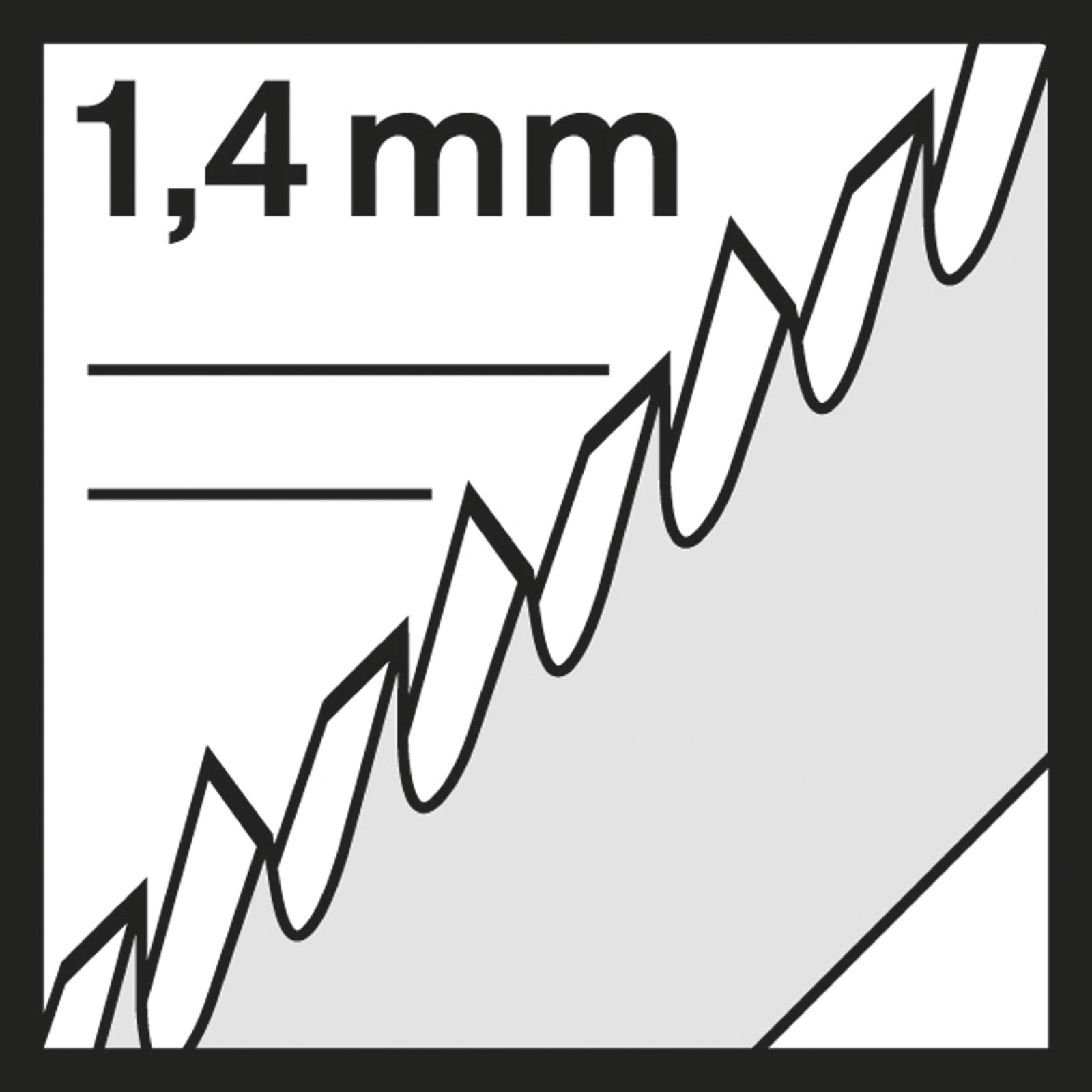 - Präzisionsgeschliffene Zähne mit Kegelschliffkörper und das schmale Blatt ermöglichen makellose Kurvenschnitte