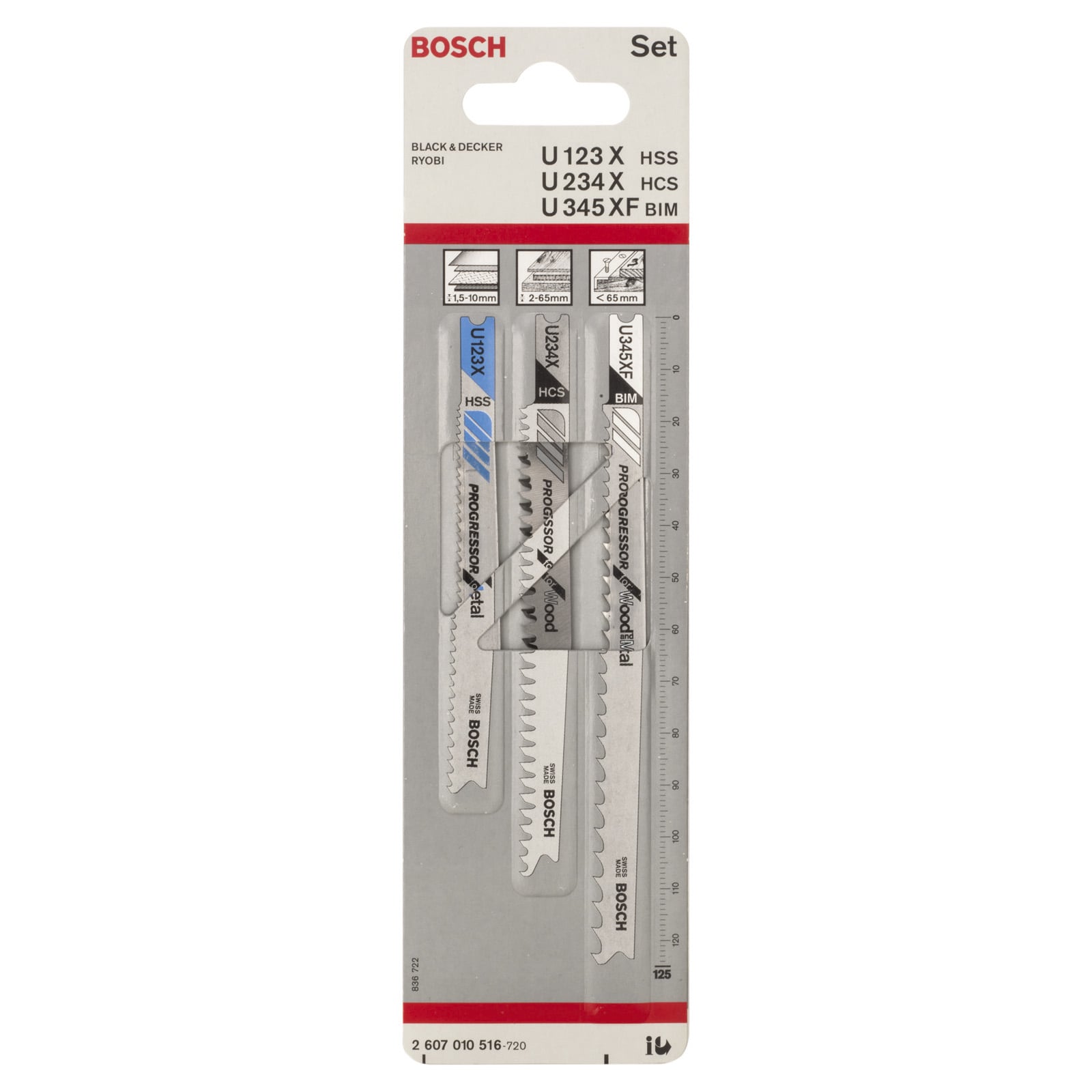 - 1x Bosch Stichsägeblatt-Set (je 1x U 123 X, U 234 X, U 345 XF)