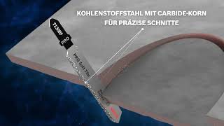 Für den Gebrauch mit Stichsägen mit T-Schaft-Aufnahme. Das T 130 RIFF Special for Ceramics Stichsägeblatt ist besonders robust bei geraden Schnitten in Sonderwerkstoffen. Der grobe Carbide-Korn ist für den längeren Gebrauch bei abrasiven Keramikmaterialien konzipiert. Die Zahnleiste ist zudem mit der Carbide Technology an einen hochelastischen Kohlenstoffstahlkörper geschweißt, wodurch das Blatt durch Materialien, wie z. B. Wandfliesen in Keramik, schneiden kann. Der grobe Carbide-Korn (K30) schneidet weiche Wandfliesen aus Keramik mit einer Dicke von 5-15 mm.