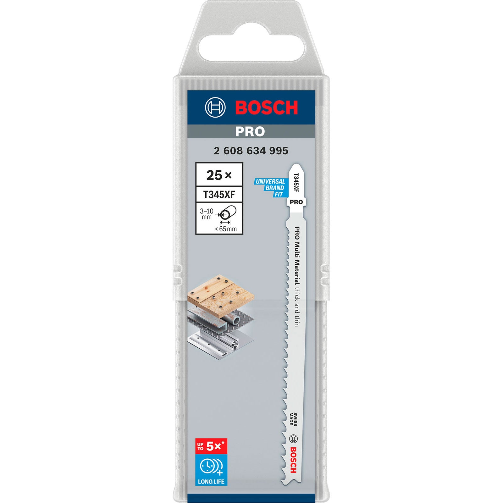 - 1x Bosch PRO Multi Material thick and thin T345XF Stichsägeblatt 132 mm 25-tlg.
