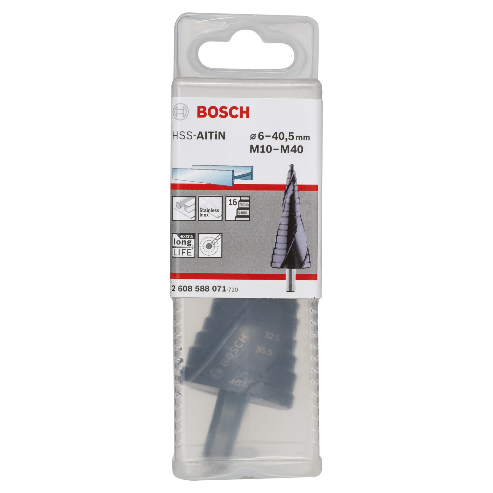 - 1x Bosch Stufenbohrer HSS-AlTiN, für Kabelverschraubungen, M10-M40, 10 mm, 125,5 mm - 2608588071