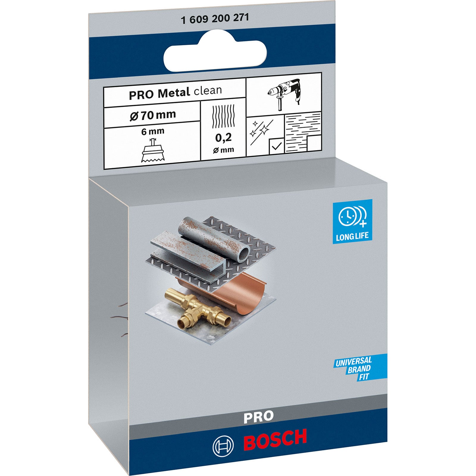 - 1x Bosch PRO Metal clean Topfbürste 70 x 0,20 mm gerader Schaft
