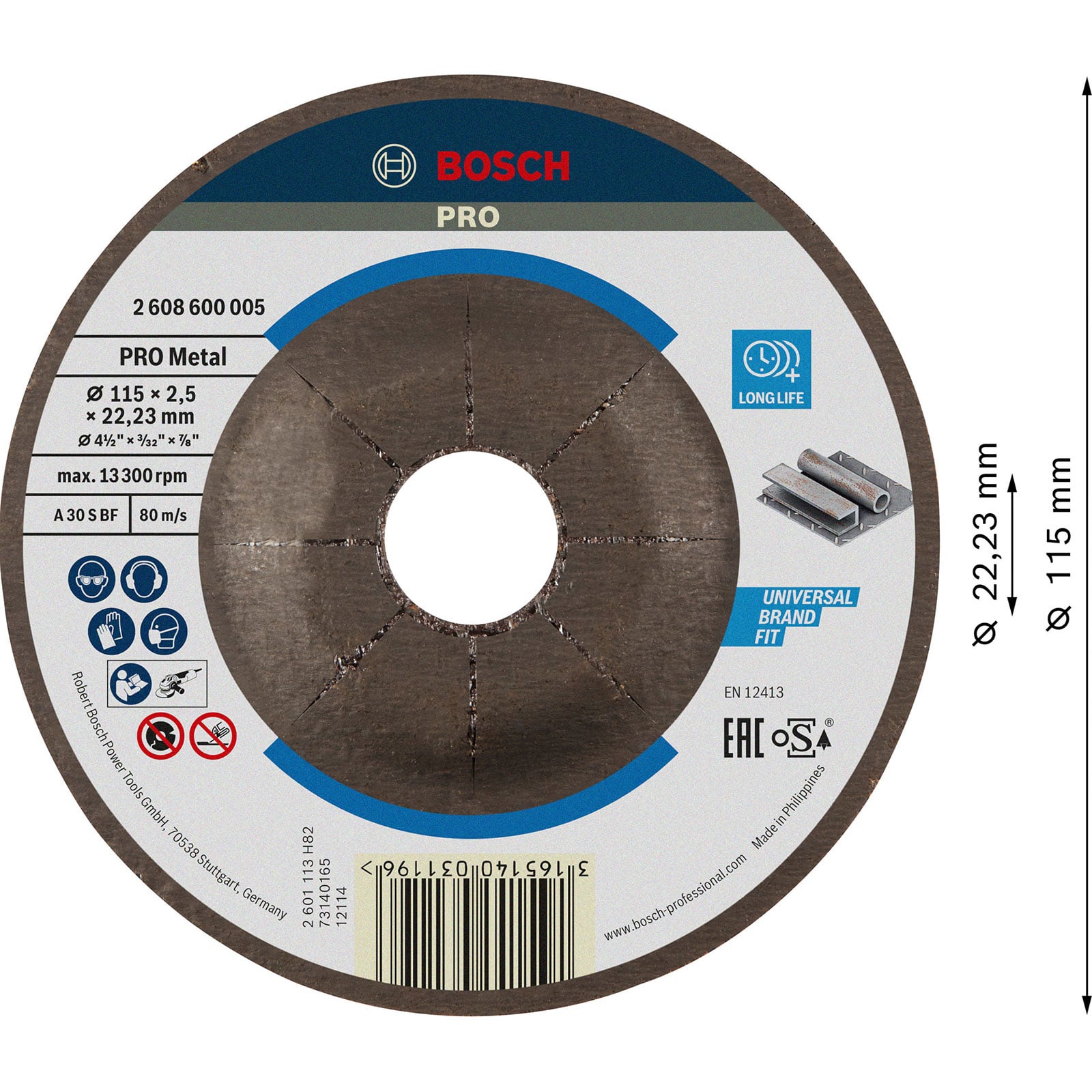 "Bosch PRO Metal Trennscheibe 115 x 2,5 x 22,23 mm - 2608600005"