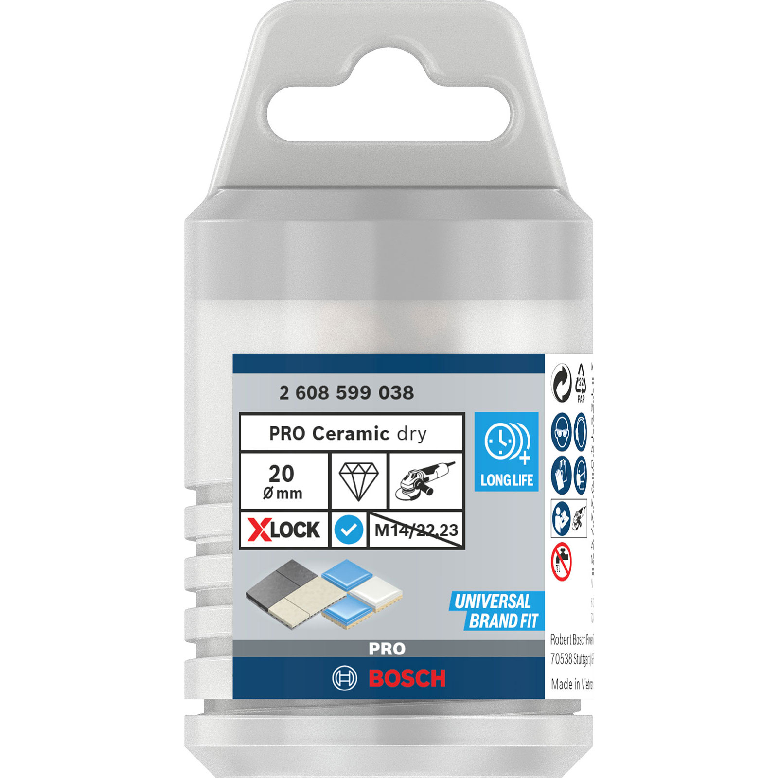 Der X-LOCK Diamanttrockenbohrer Best for Ceramic Dry Speed bietet hohe Lebensdauer beim Trockenbohren in Hartkeramik. Der hochwertige Diamantbesatz ermöglicht hohe Bohrdrehzahlen und die Vakuumlöttechnologie gewährleistet eine hohe Lebensdauer. Diese Trennscheibe eignet sich für Fliesen – von weichen Wandfliesen bis zu sehr harten Bodenfliesen aus Steingut. Dank schlüssellosem X-LOCK System lassen sich Diamanttrockenbohrer schnell und bequem wechseln. Er ist für X-LOCK Winkelschleifer geeignet.