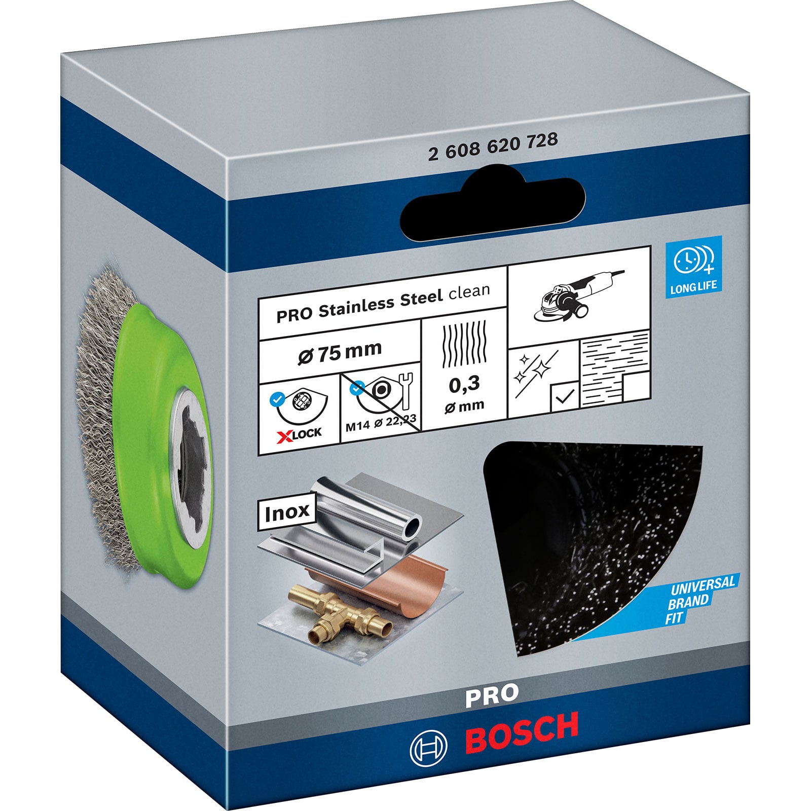 - 1x Bosch PRO Stainless Steel clean X-Lock Topfbürste 75 x 0,30 mm
