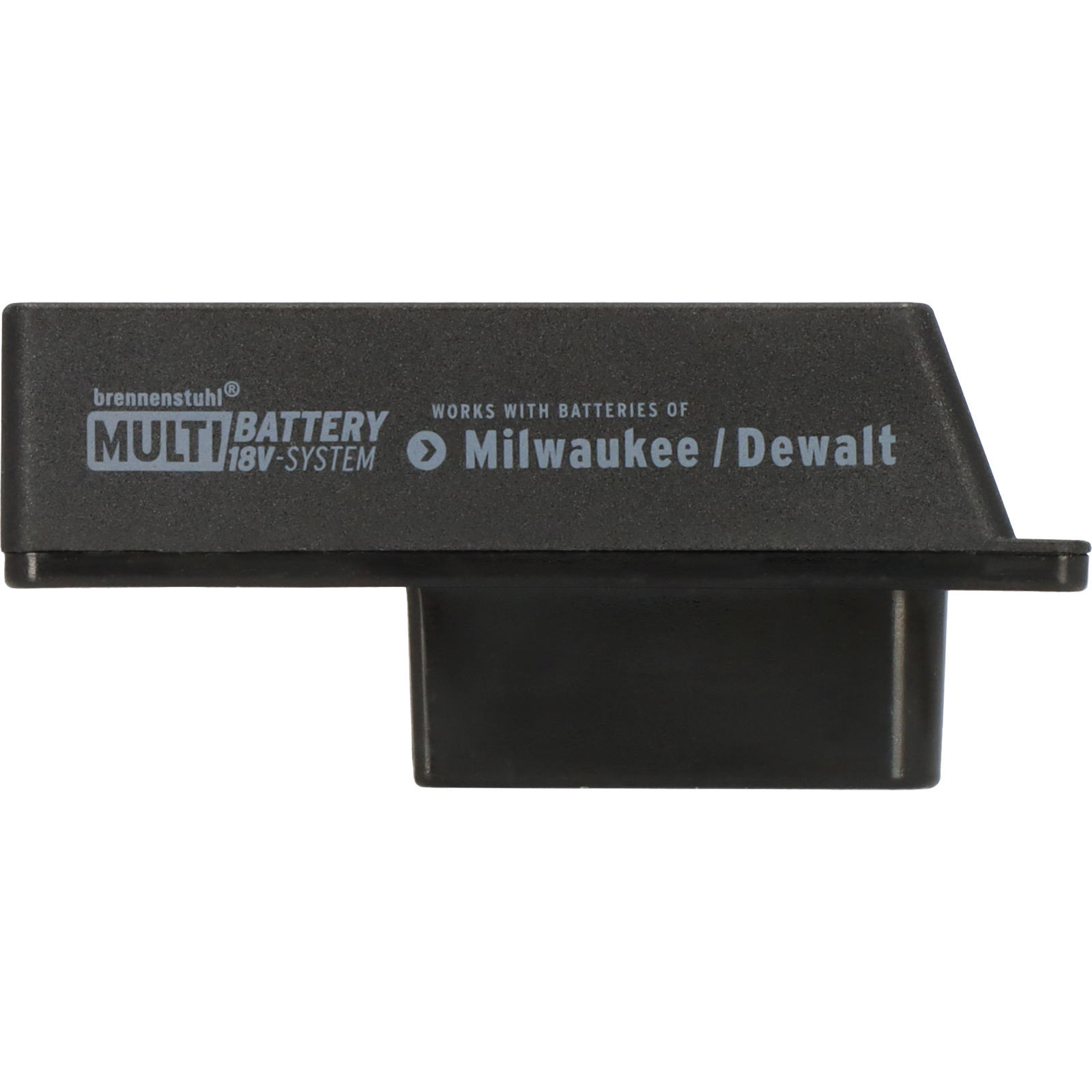 - Das Brennenstuhl Multi Battery 18V System ermöglicht den Einsatz effizienter 18V Akku-Technologie von Milwaukee/Dewalt in jedem Multi Battery LED Baustrahler