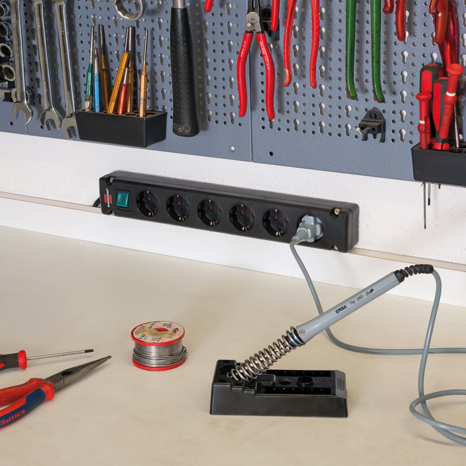- Steckleiste mit beleuchtetem Sicherheitschalter zum Ein- und Ausschlaten (zweipolig)