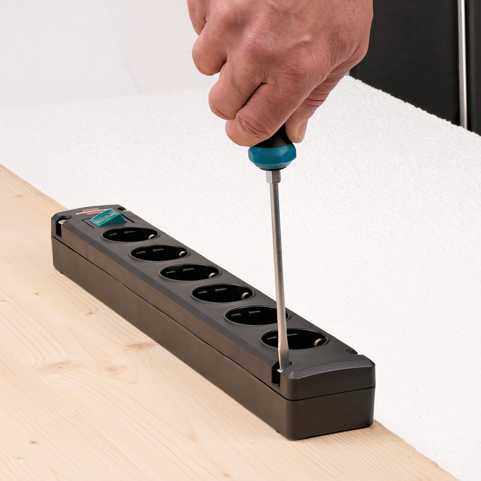 - Mehrfachstecker mit praktischen Schraublöchern zur Wandmontage